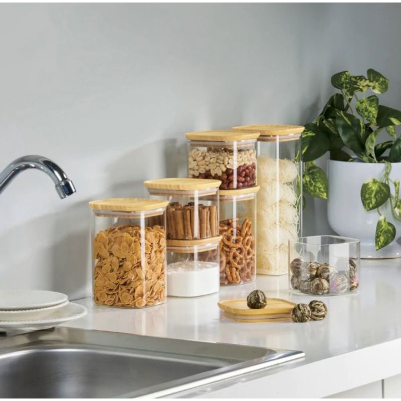 Bamboo Clear Storage Jar/Toples Tupperware/Toples Bamboo Tupperware/Toples Bamboo