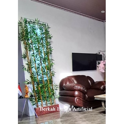 Bambu Partisi T 2.25M Pot 60cm Partisi Artificial Bambu Penyekat Pembatas Ruangan Dekorasi Hiasan Rumah Tirai Bambu Plastik Tanaman Hias