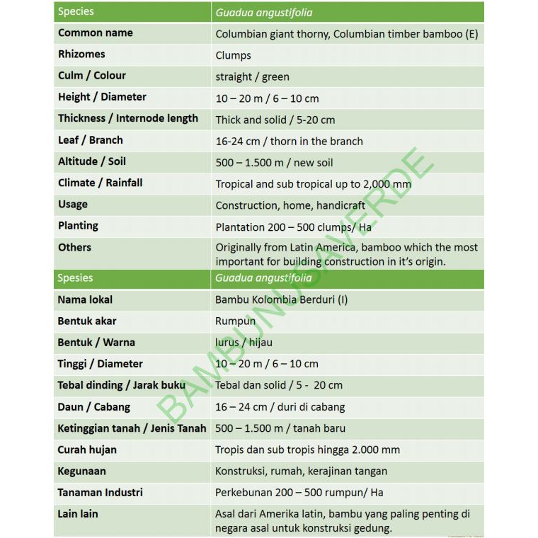 Bambu kolombia berduri / Guadua angustifolia / colombian thorny bamboo / bambu kultur jaringan / bambu industri / bambu hias