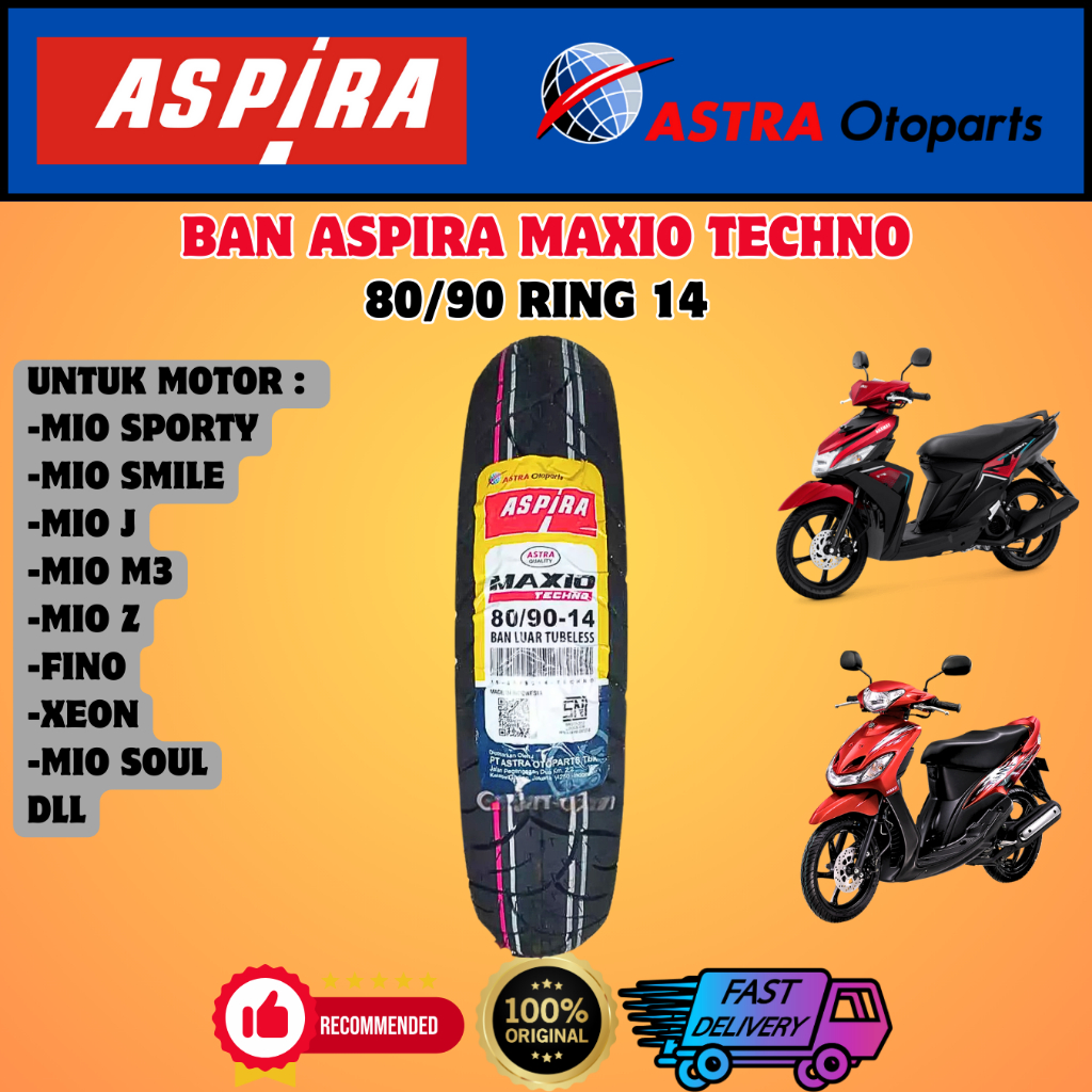 Ban Depan / Belakang Motor Yamaha Mio Sporty Mio Smile Mio Soul Mio GT Mio S Mio Z Mio M3 XEON FINO Aspira Maxio Techno 70/90 , 80/90 RING 14 Tubeless ORIGINAL FREE PENTIL