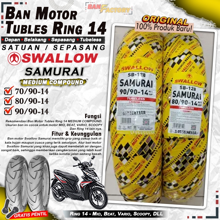 Ban Motor Beat Swallow Samurai Ring 14 Tubles Ban Motor Tubeless Mio Beat Vario Ring 14 Tubles