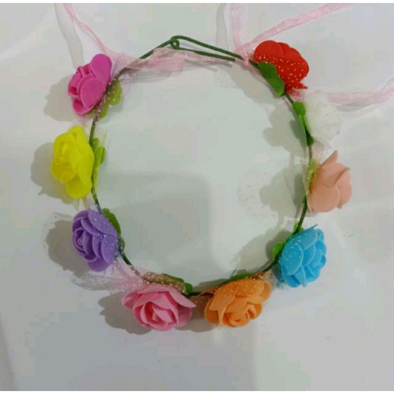 Bando Bunga LED Flower Crown Mahkota Bunga Lampu Kawat Bunga Bando Merah Putih