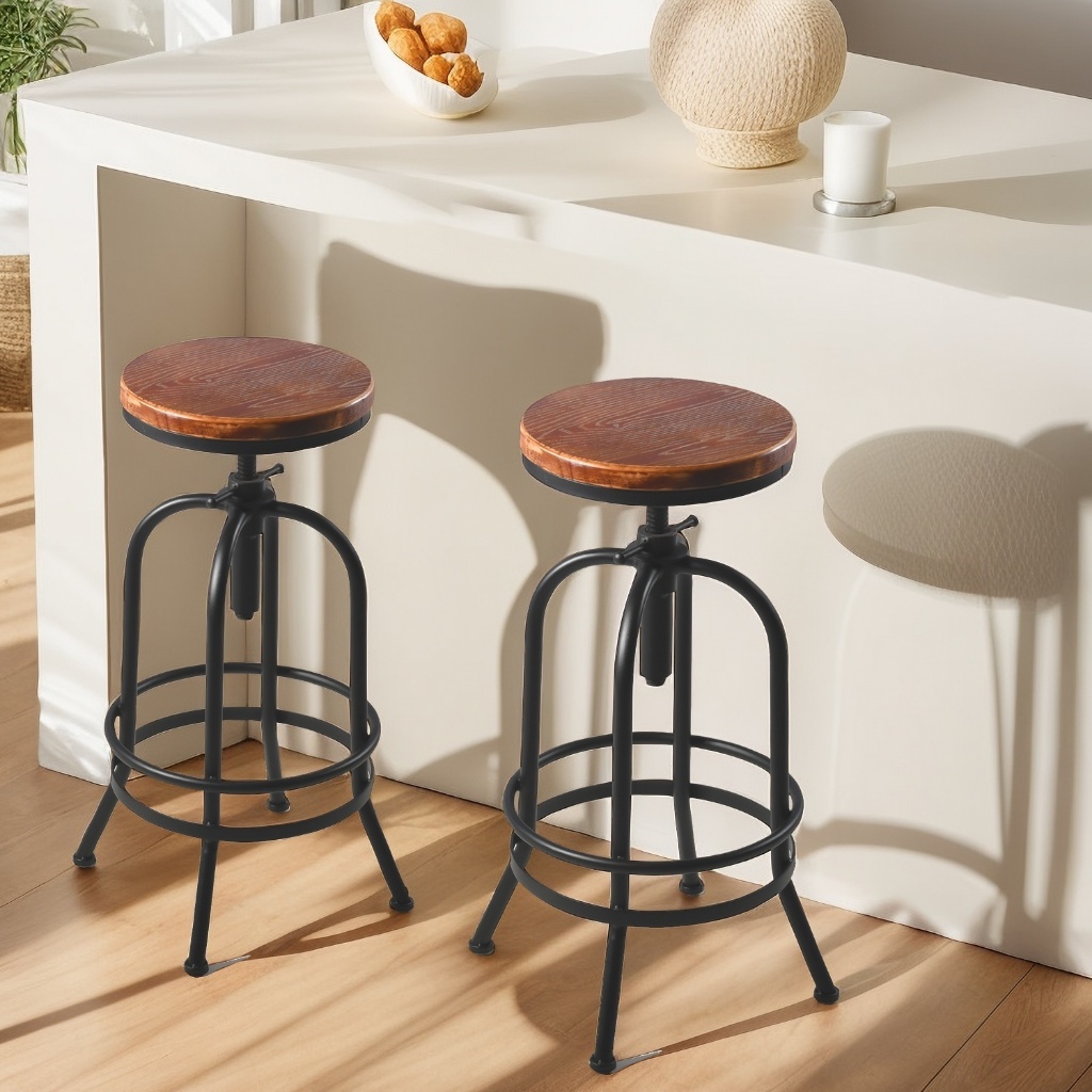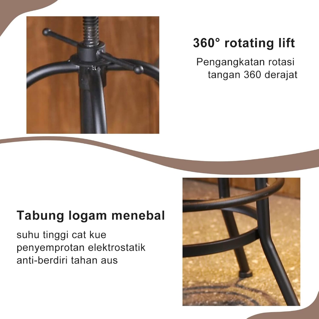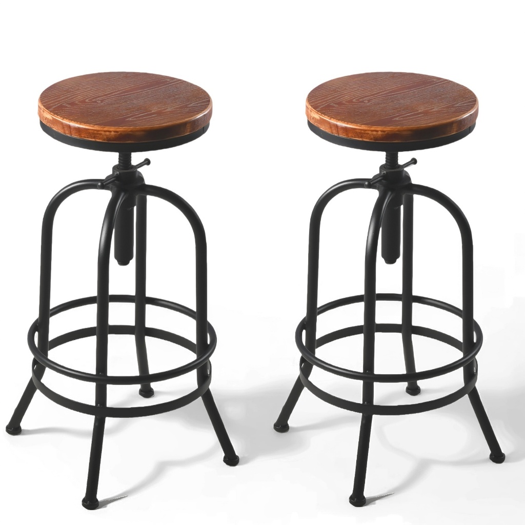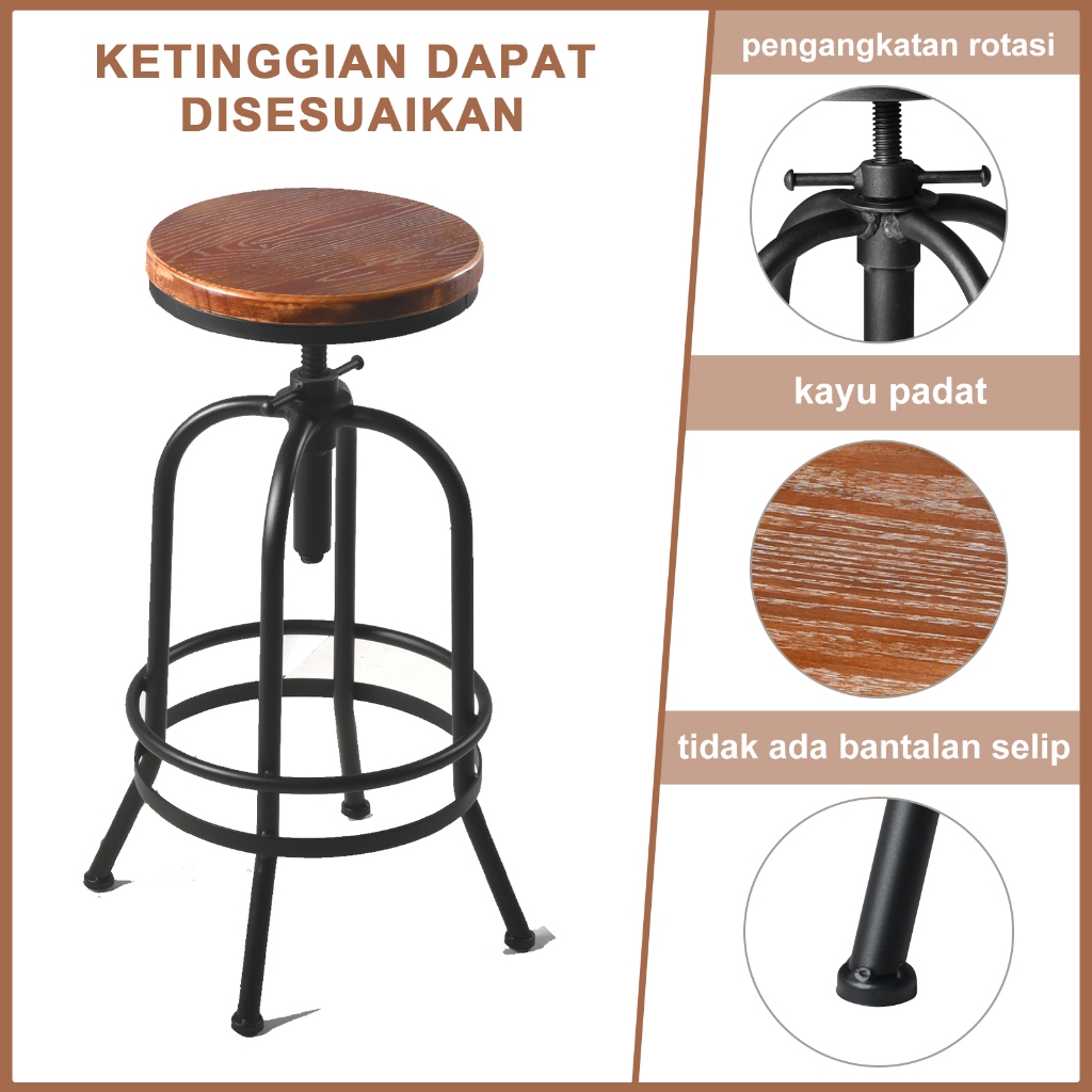 Bangku Bar Industri Antik/Putar Kayu Logam/Bar Retro/Tinggi Adjustable/Bangku Cafe/Kursi Kayu & Besi