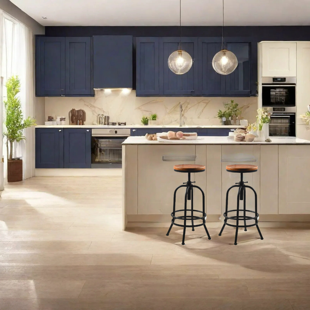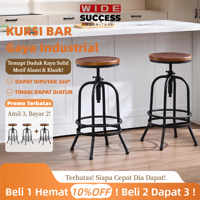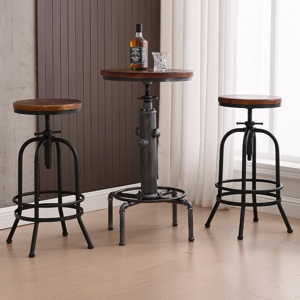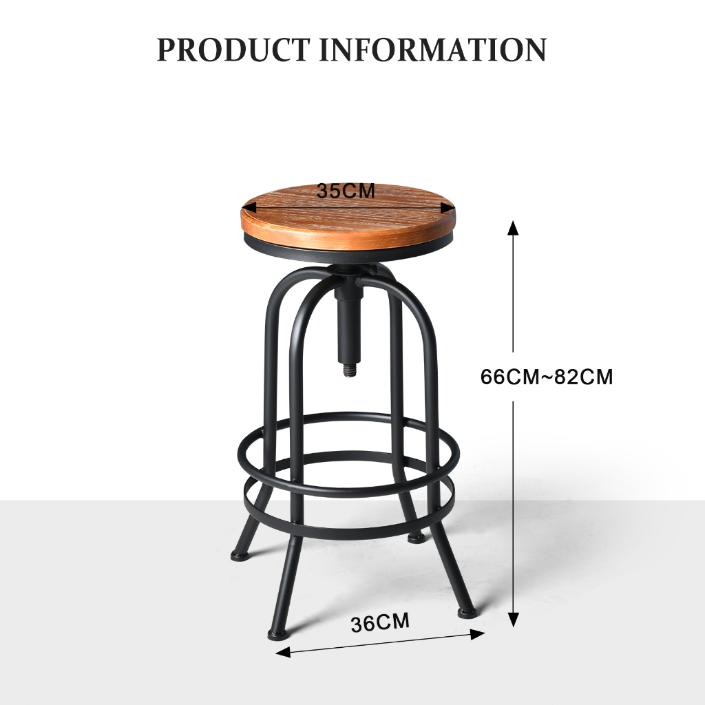 Bangku Bar Industri Antik/Putar Kayu Logam/Bar Retro/Tinggi Adjustable/Bangku Cafe/Kursi Kayu & Besi