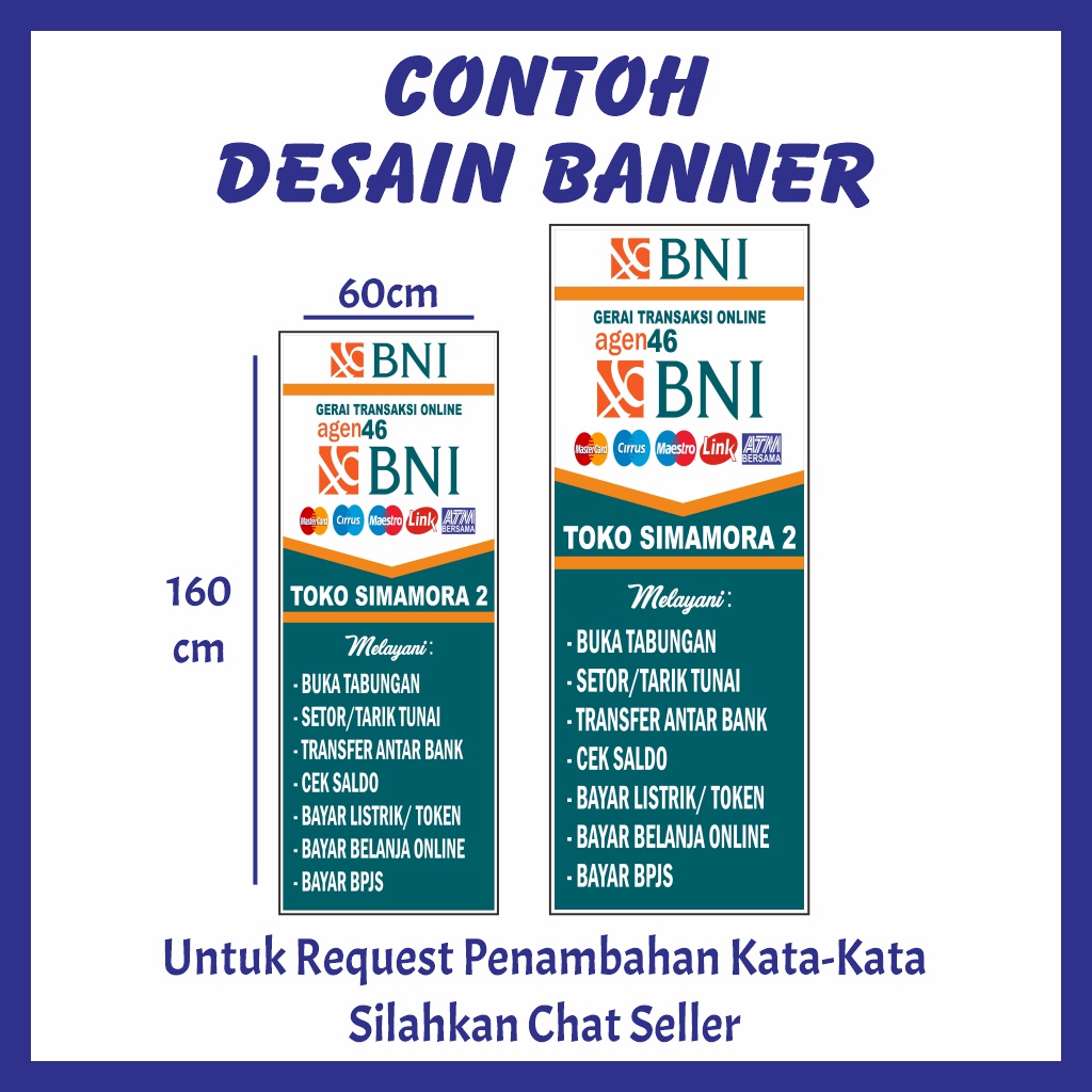Banner Bener Baner Spanduk Sepanduk Agen Bank BNI 46 Transaksi Online Ukuran 60x160cm 1 Satu M Meter Bisa COD Free Bebas Custom Request Gratis Desain Landscape Pojok Kreatif