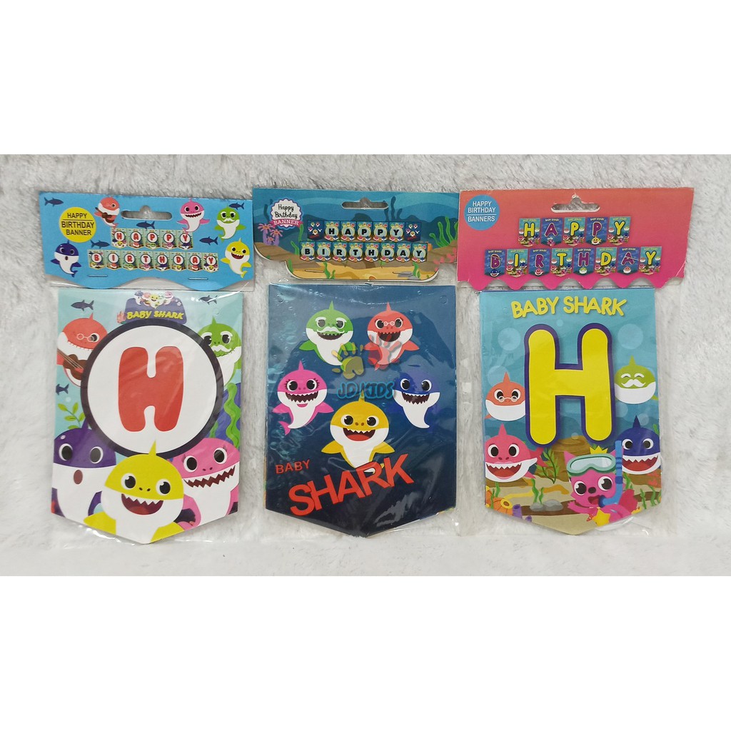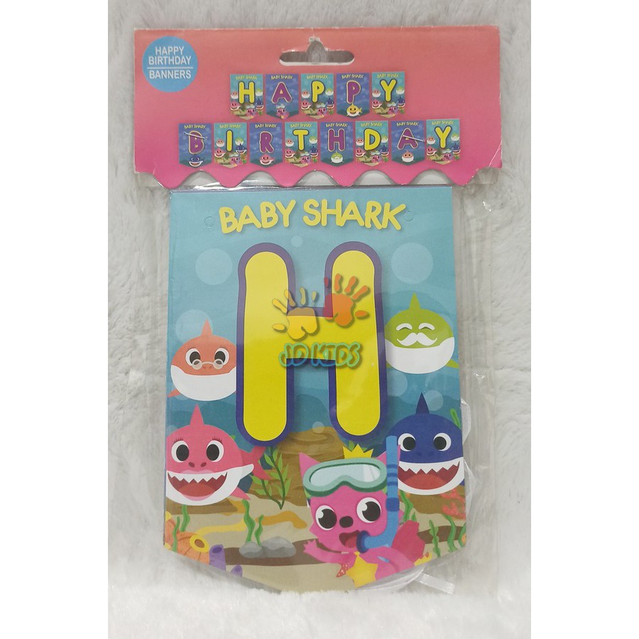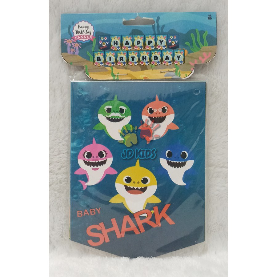 Banner Gantung Tempel Set Happy Birthday Baby Shark