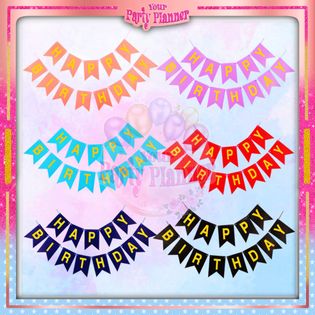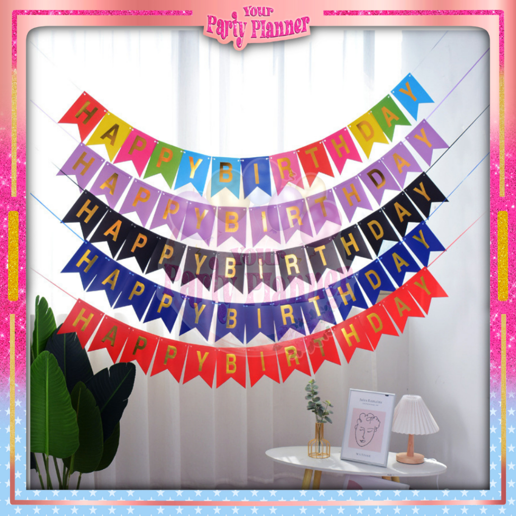 Banner Happy Birthday Warna Warni Segi Lima Dekorasi Pesta Birthday / Backdrop Banner Bendera Pesta Rainbow Tulisan Ulang Tahun