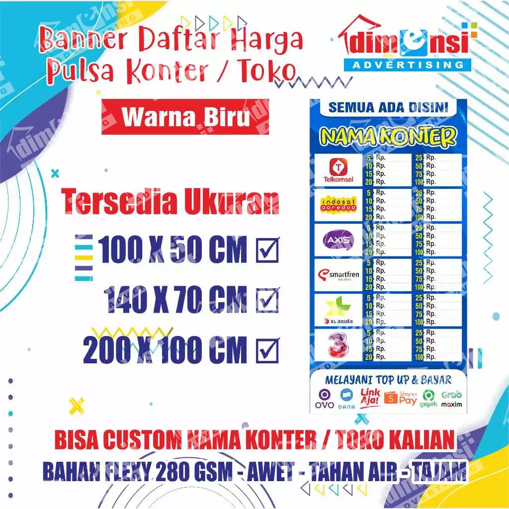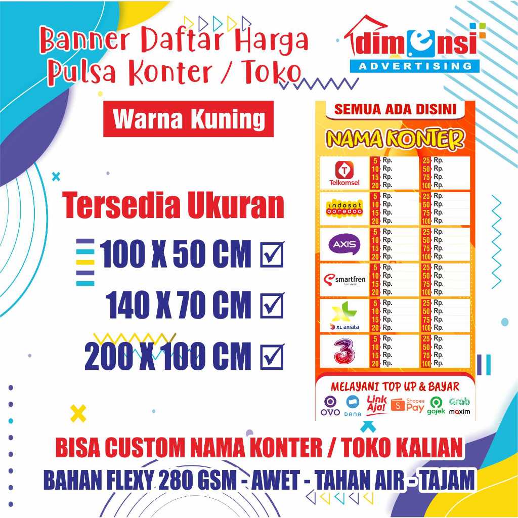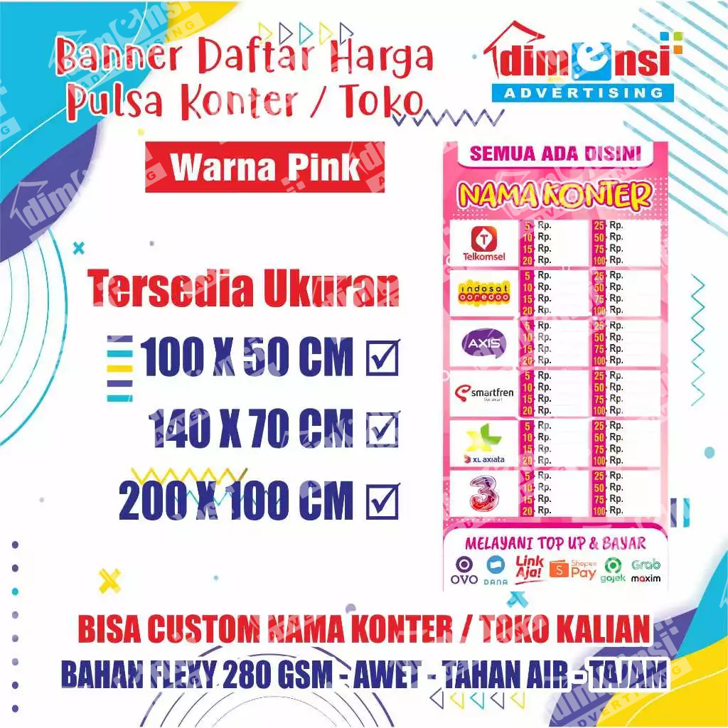 Banner Harga Pulsa Konter / Spanduk Daftar Harga Pulsa / Banner Warung Pulsa - DIMENSI ADV