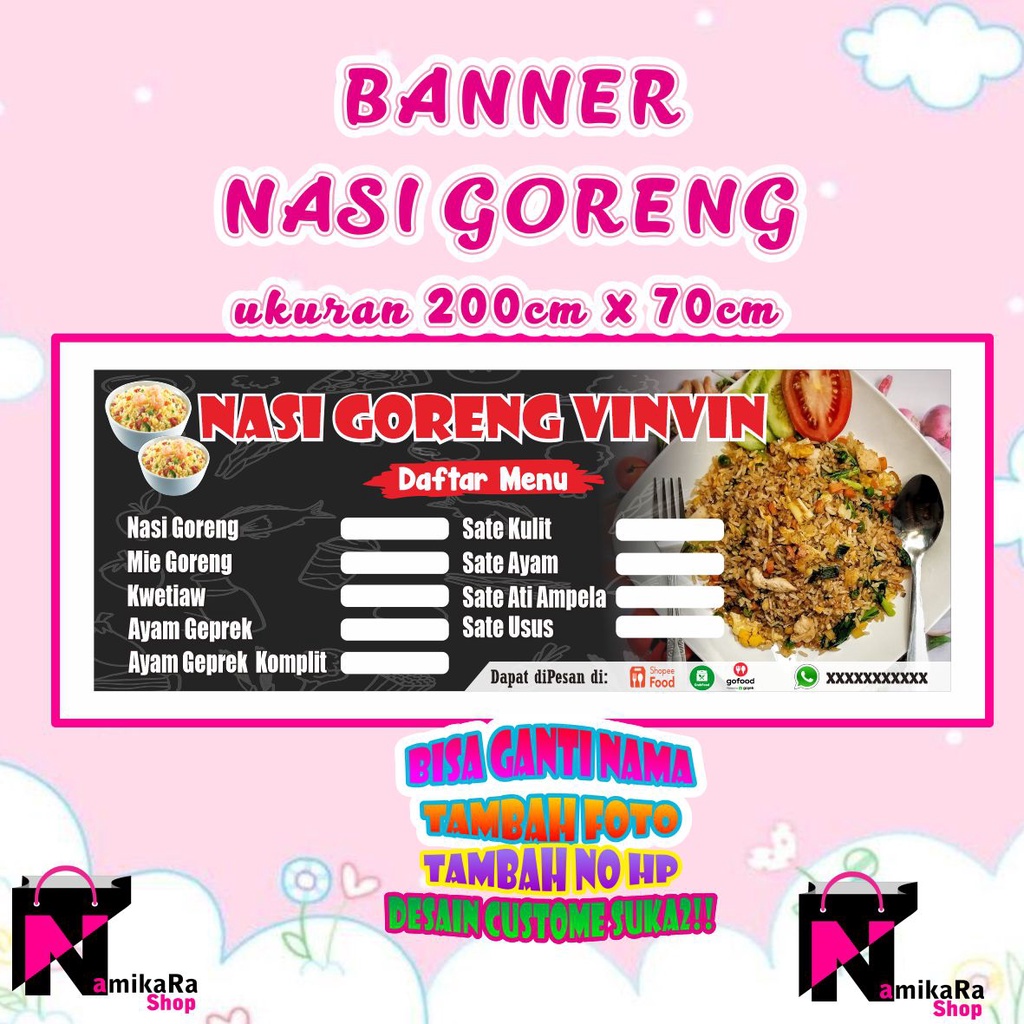 Banner Spanduk Backdrop Nasi Goreng / Banner Nasi Goreng Custome / Spanduk nasi Gorengl Ukuran 200x70cm Termurah BISA COD