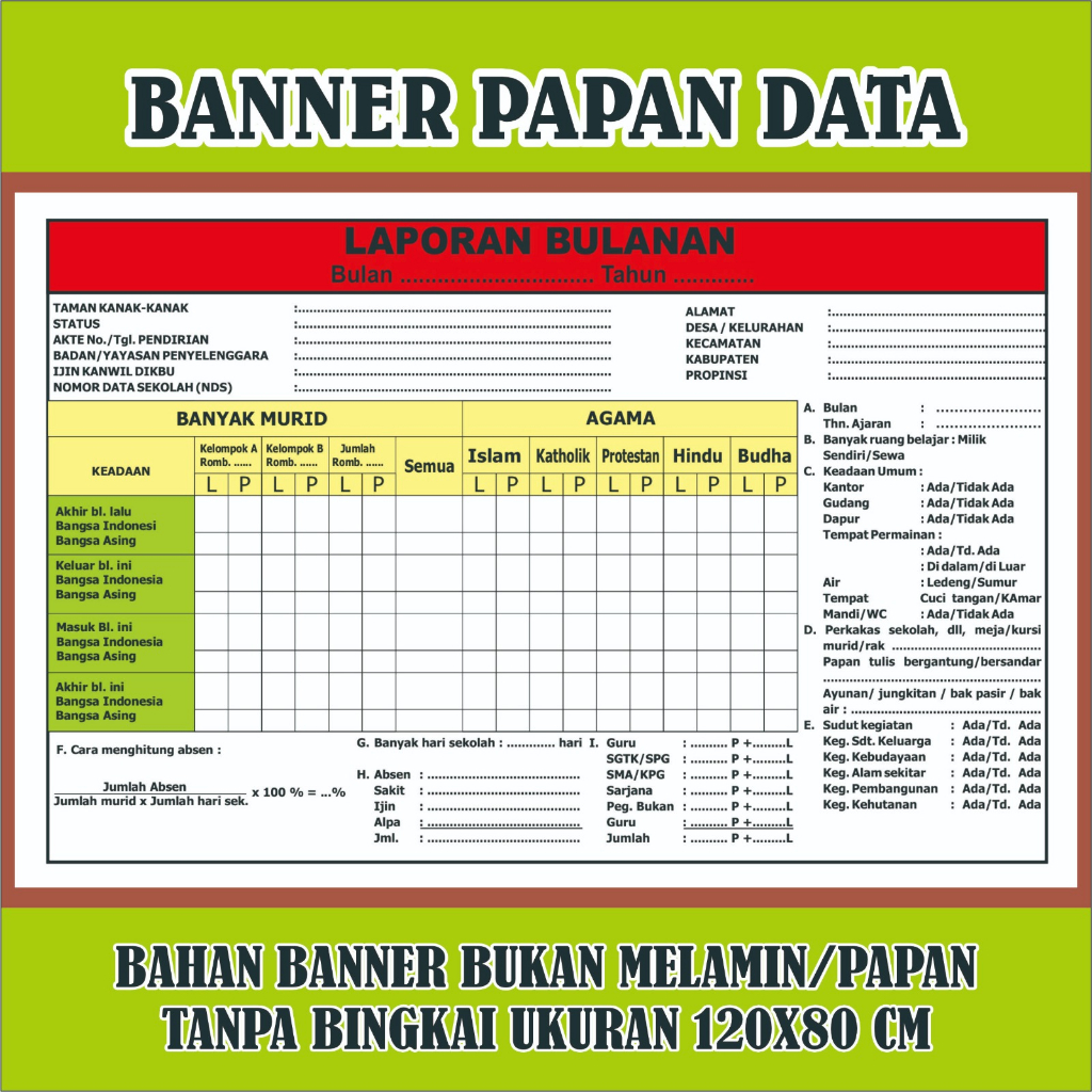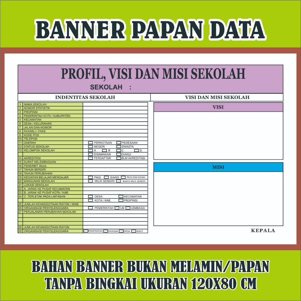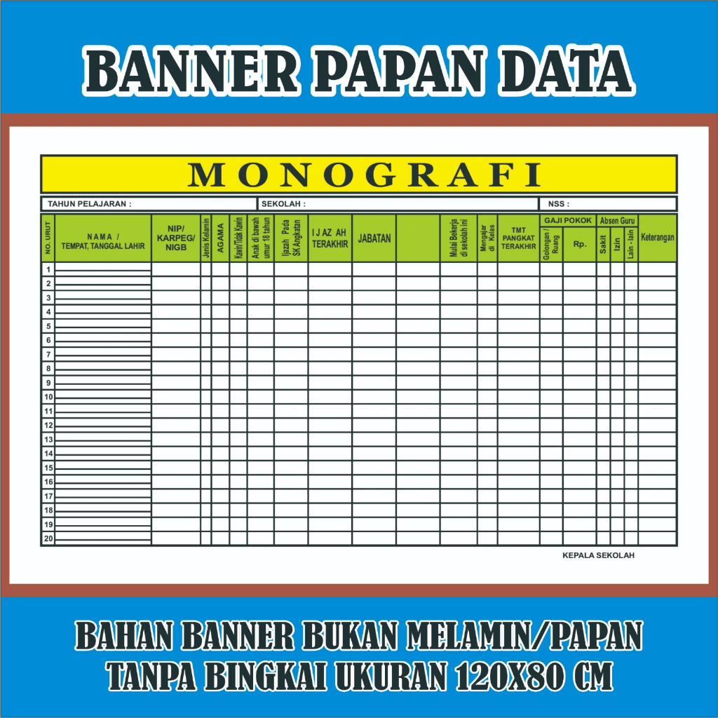 Banner Spanduk Papan Data Bank Data Kelas Custom