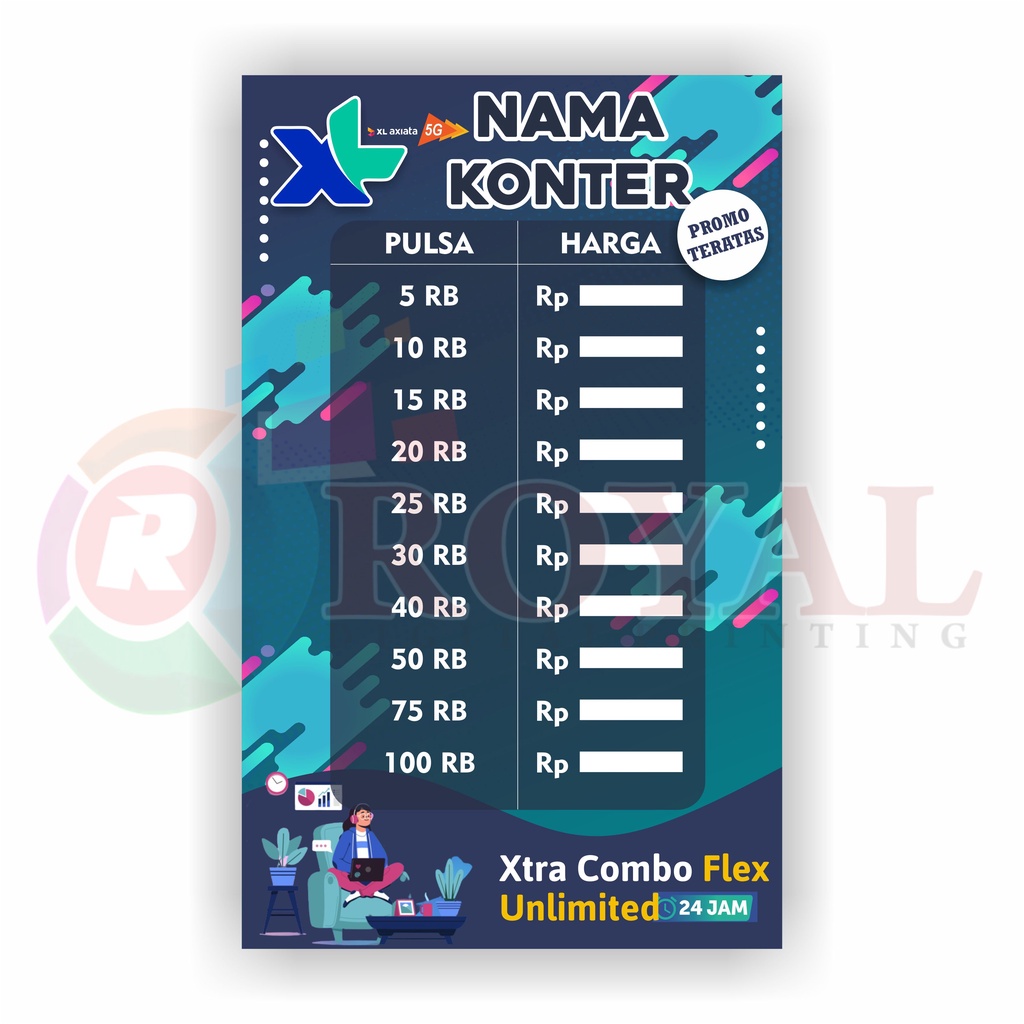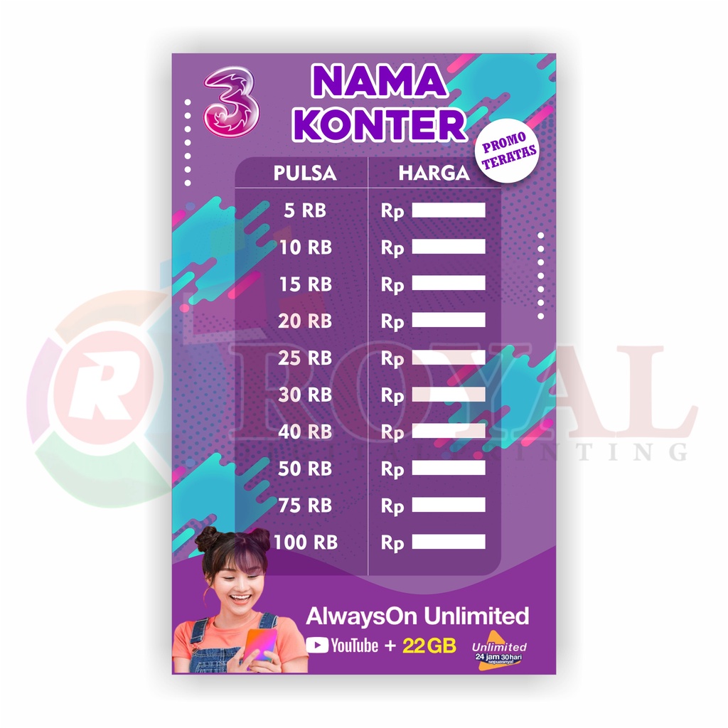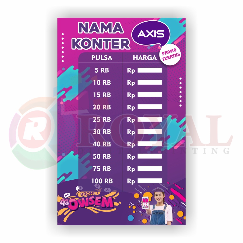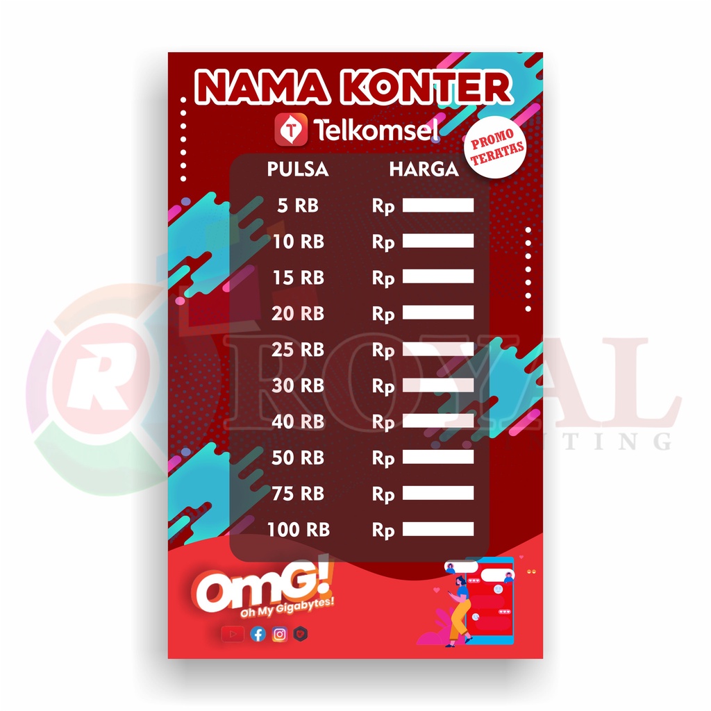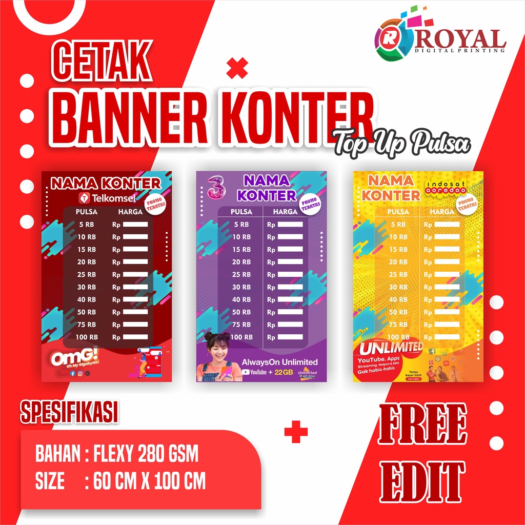 Banner Spanduk Top Up Pulsa Konter / Banner Daftar Harga / Spanduk Konter Murah / Mmt flexy 280 Ukuran 60 X 100 CM