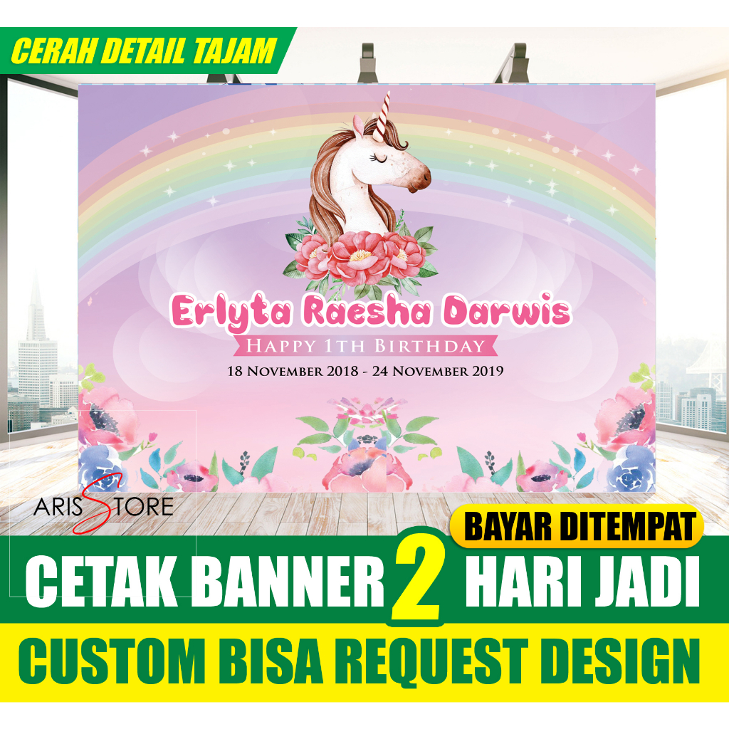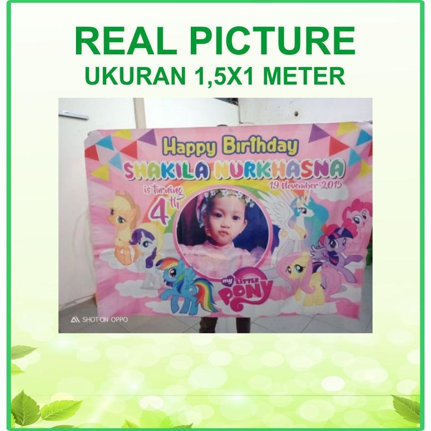 Banner Ulang Tahun Anak cewek unicorn custom | Spanduk Ultah anak perempuan karakter Kuda Poni - Bisa Request - Backdrop hiasan perlengkapan ulang tahun - sepanduk ultah my little pony