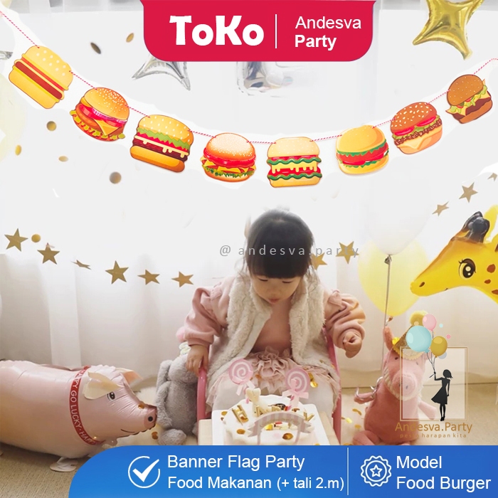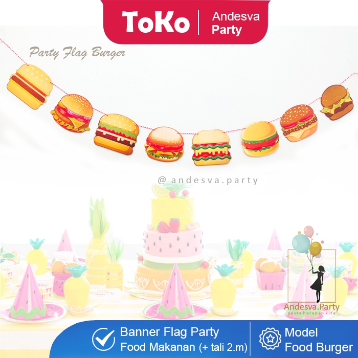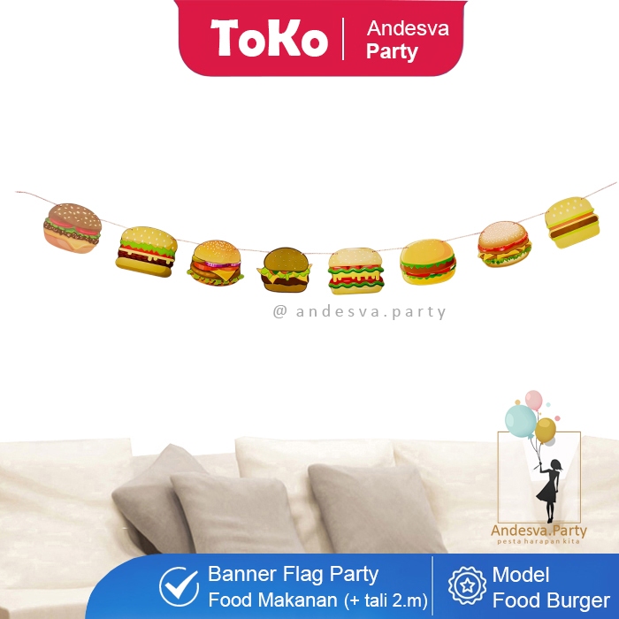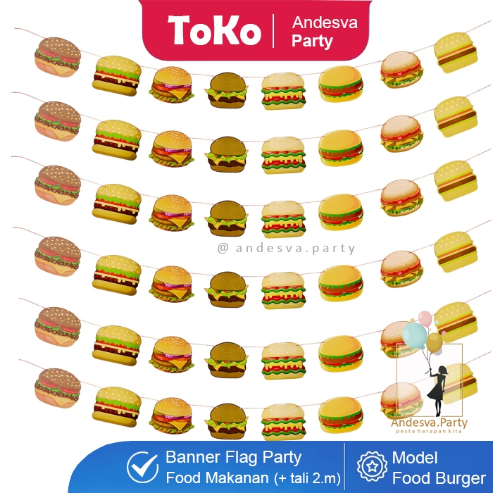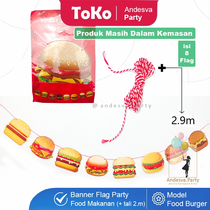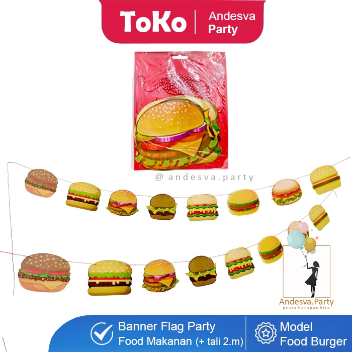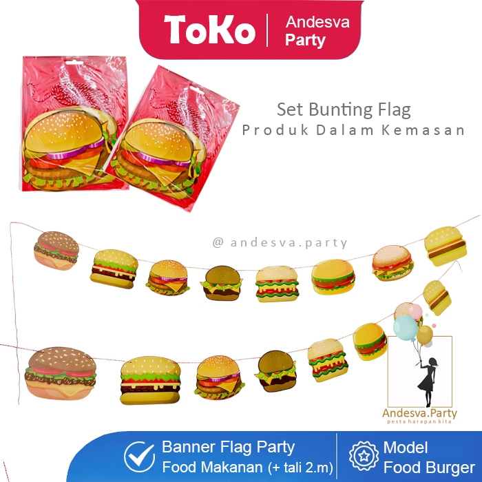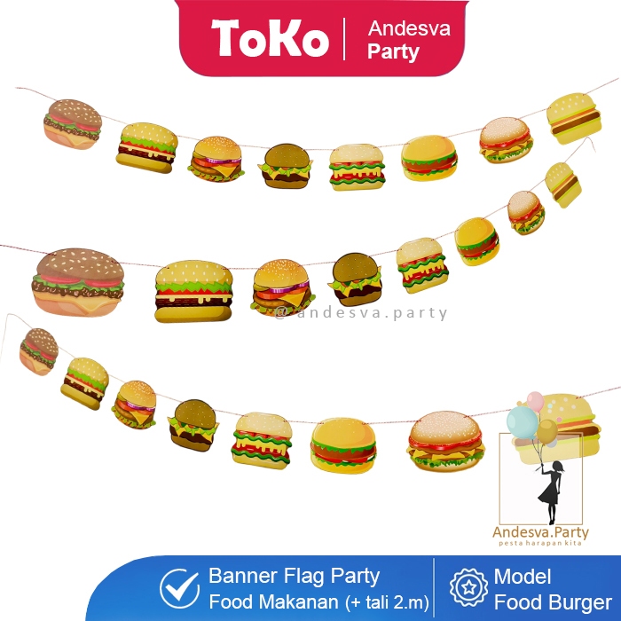 Banner burger / Bunting Flag burger hiasan food burger banner makanan burger / flag banner burger