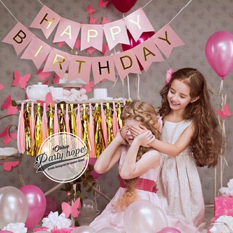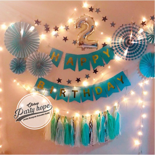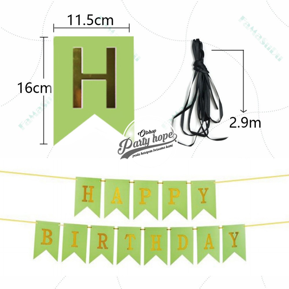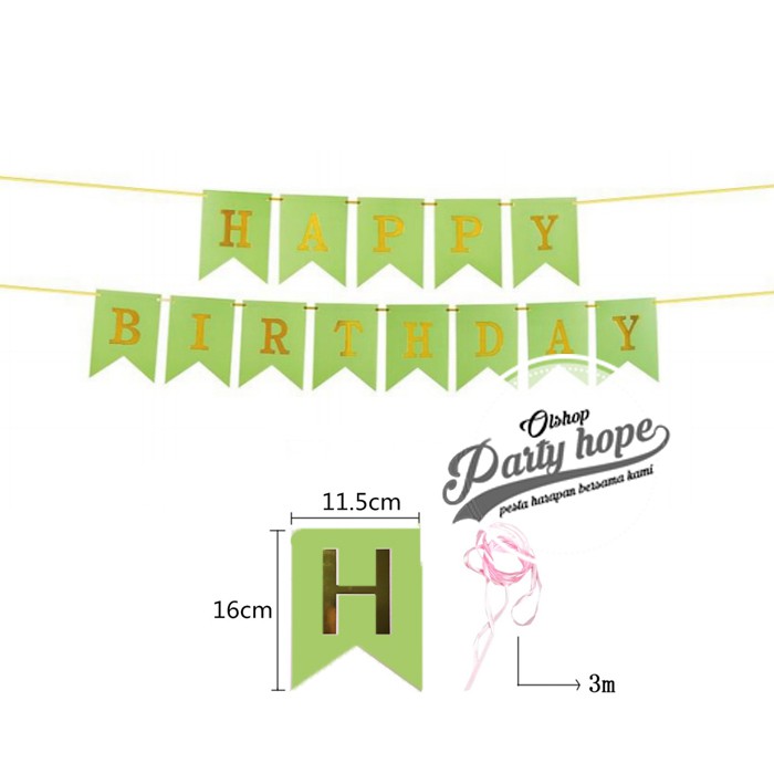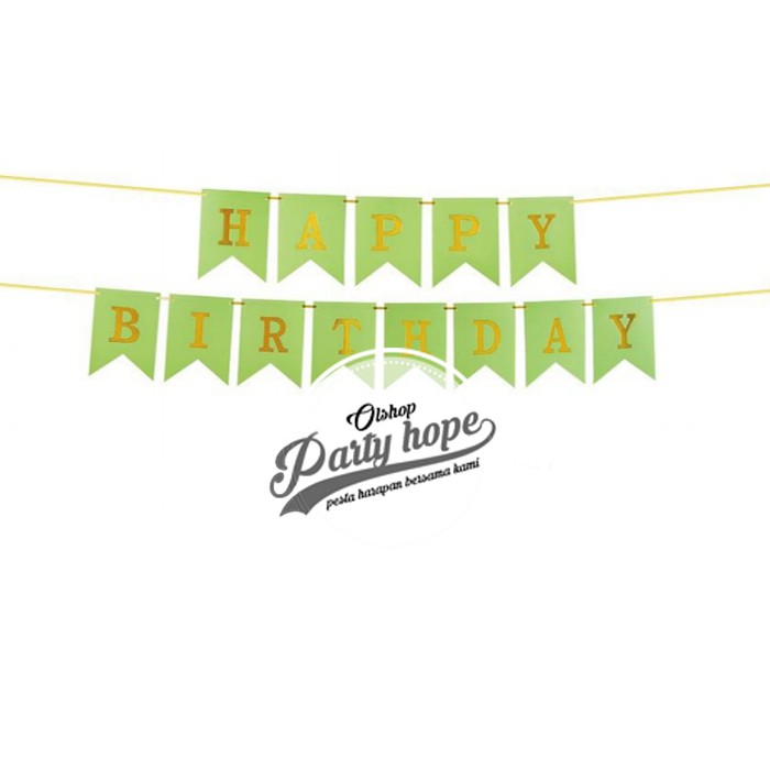 Banner happy birthday hijau / bunting flag ultah hijau tulisan gold / banner hbd hijau