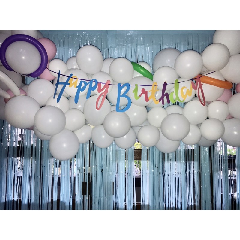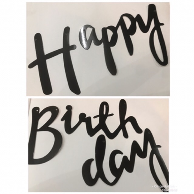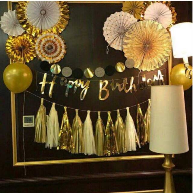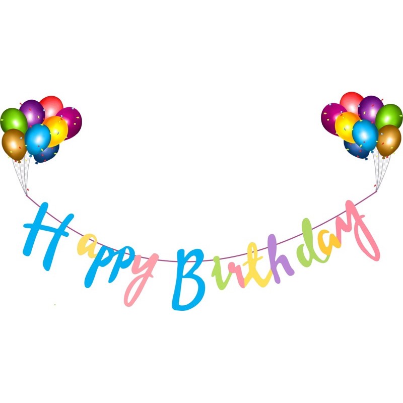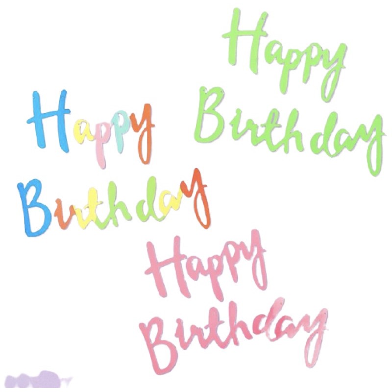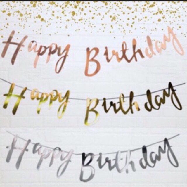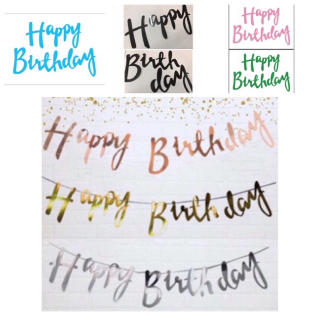 Banner happy birthday tulisan latin sambung gold silver rose gold pink biru hijau warna warni