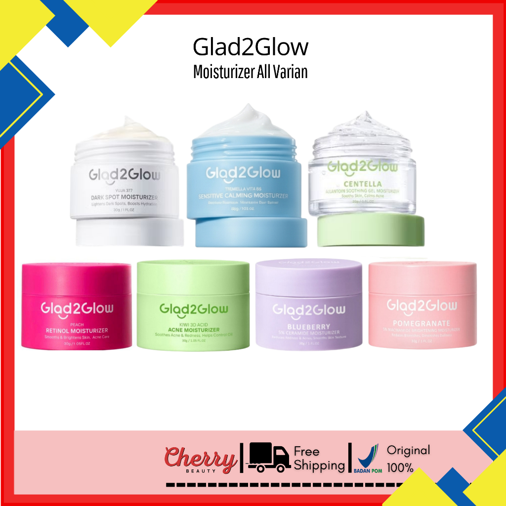 Glad2Glow Moisturizer Series - Pelembab Wajah Pomegrante Niacinamide Centella Yuja Symwhite Blueberry Ceramide Moisturizer