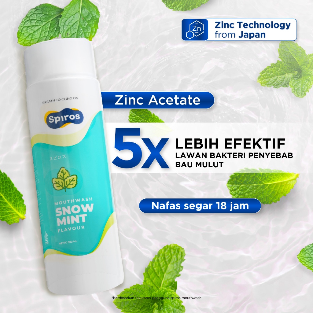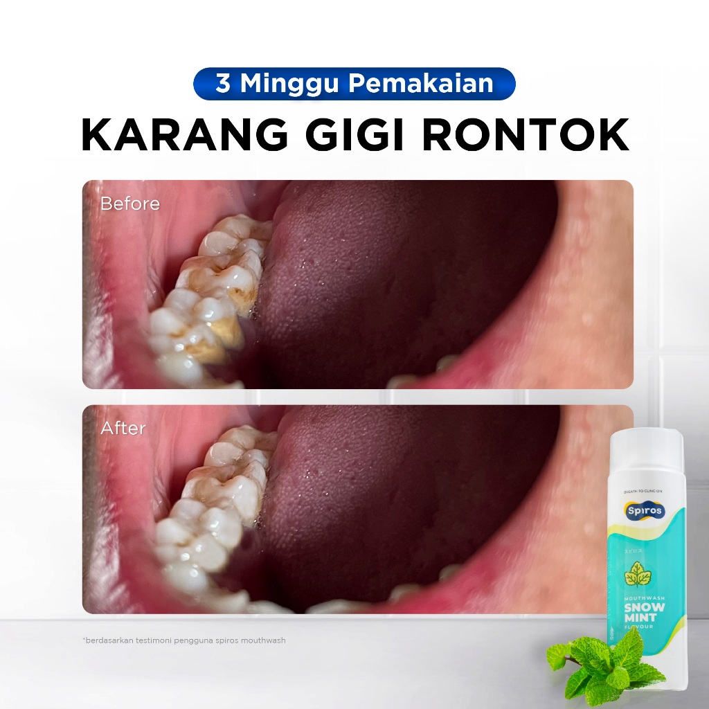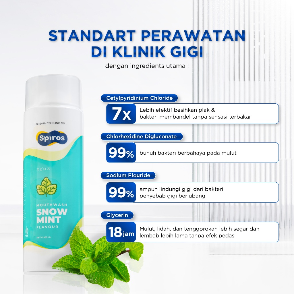 SPIROS | Mouthwash Snow Mint 500ml | Angkat Plak | Obat Kumur Penghilang Bau Mulut | Nafas Segar Seharian