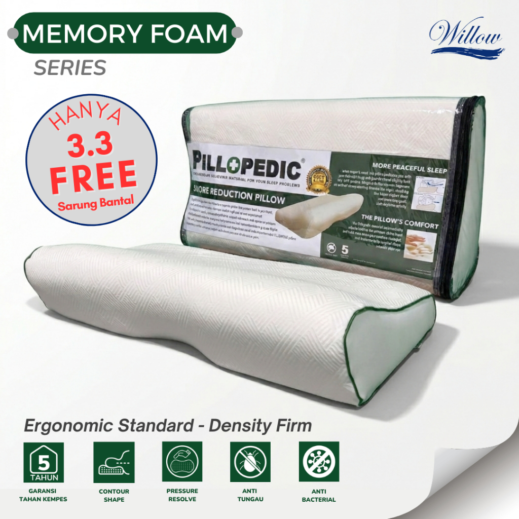 Willow Pillopedic Bantal Anti Ngorok Memory Foam, Snore Reduction Pillow