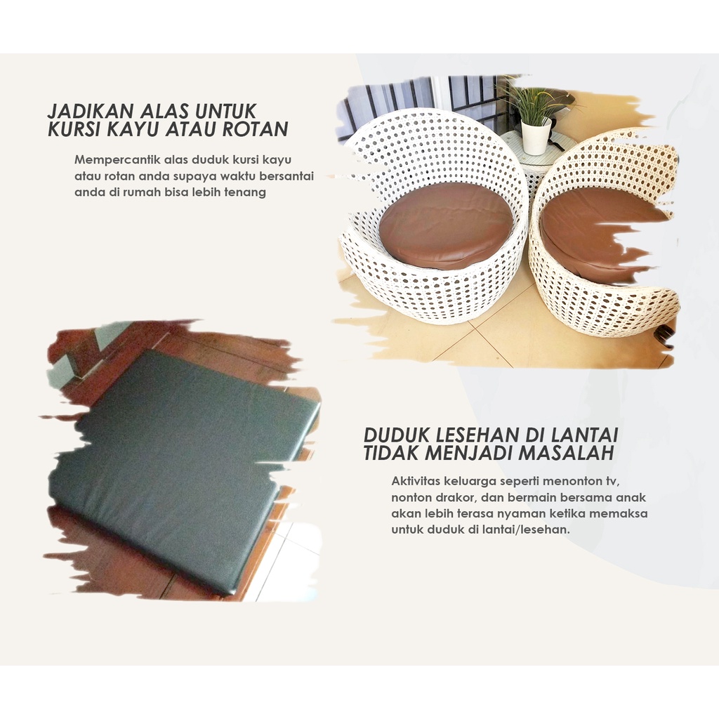 Bantal Duduk Kulit Tebal 8cm dan 5cm Bulat/Kotak 50x50cm Alas Lantai Leather Bantalan Kursi Ruang Tamu