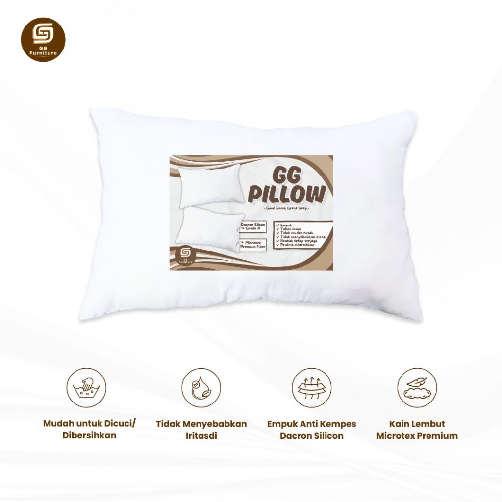 Bantal GG Dacron Silicon 40x60 Putih Lembut Premium Kain Microtex