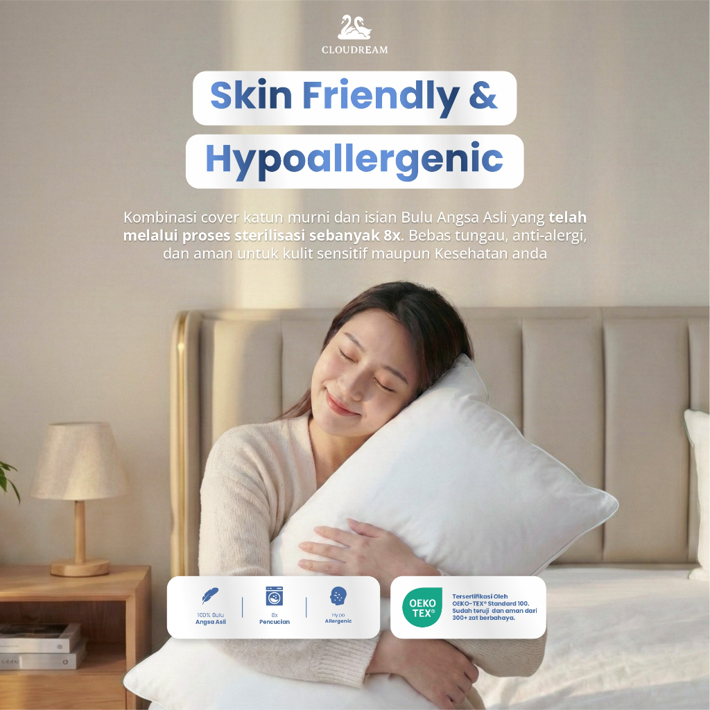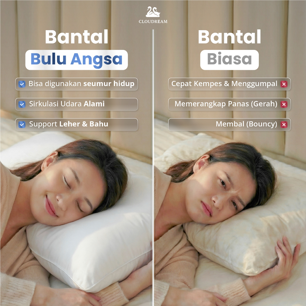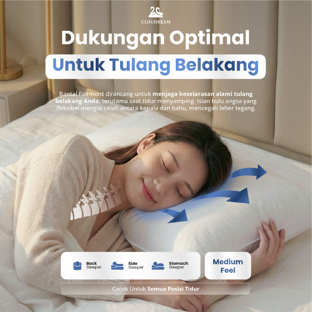 Cloudream Bantal Bulu Angsa Asli / Bantal Hotel Bintang 5, Type Fairmont (Medium Feel) Bantal Tidur