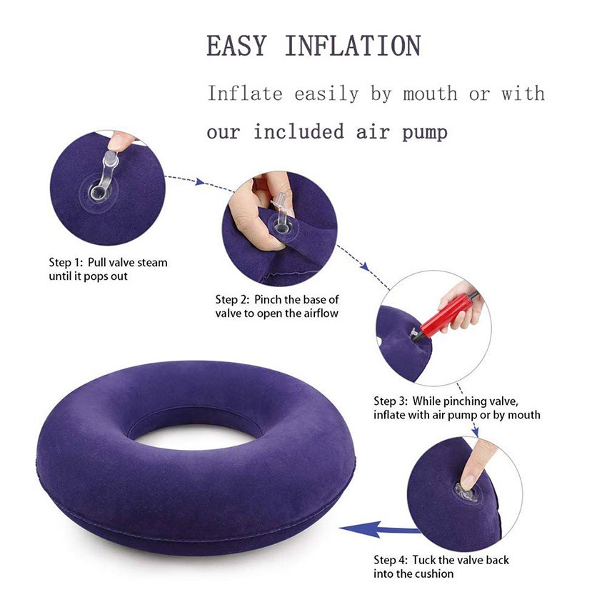 Bantalan/Alas Duduk Bentuk Donat Karet Tiup untuk Ambeien/Wasir/Hemorrhoid Bantal Alas Duduk