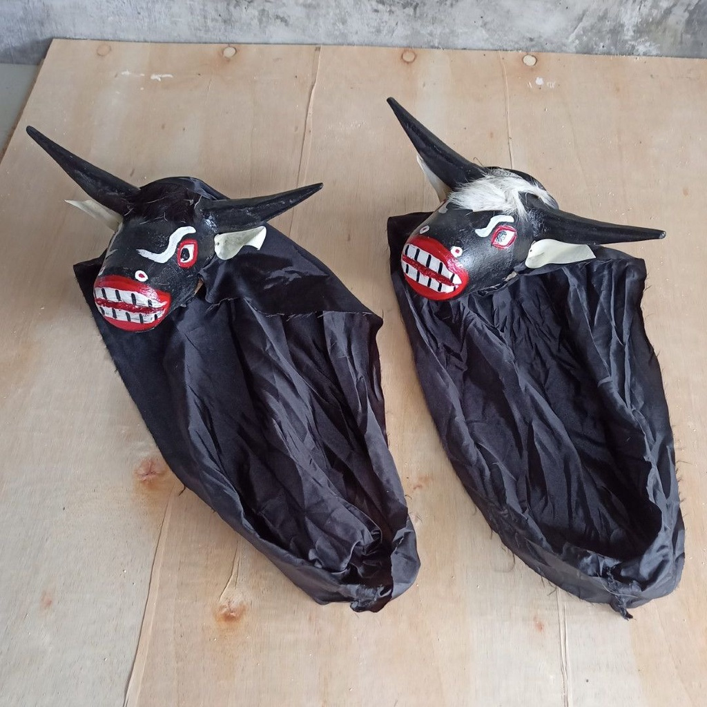Bantengan Kain Panjang Topeng Barongan Banteng Sapi Mainan Jaranan Anak / Barongan Banteng Murah / Caplokan Jaranan Full Kayu