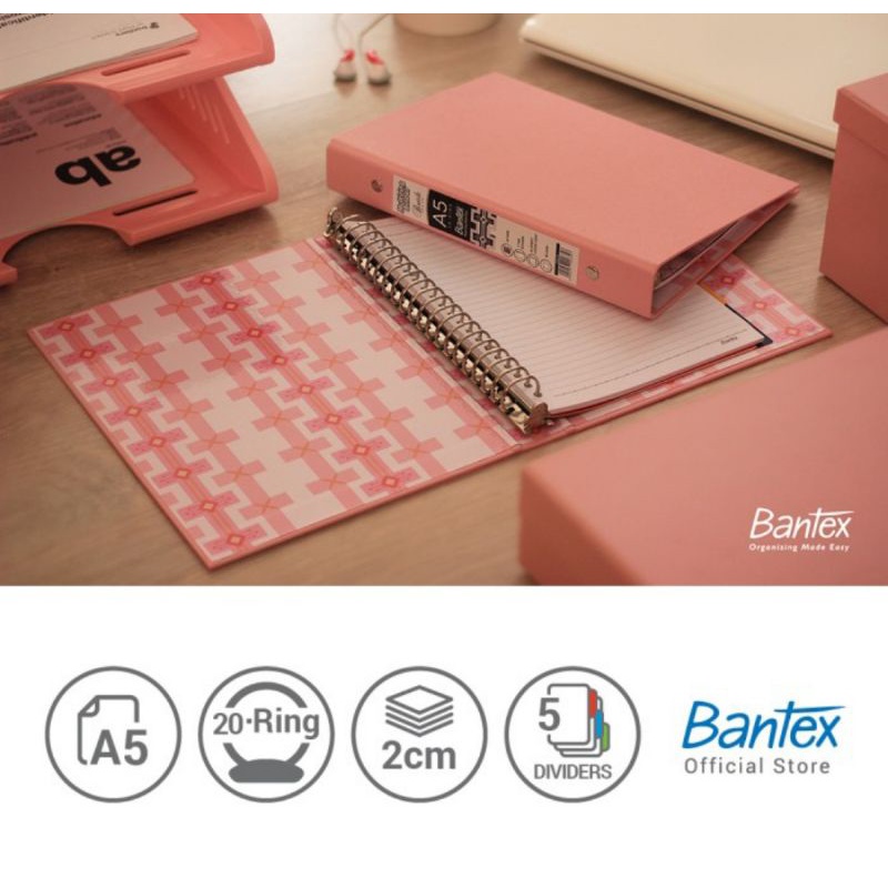 Bantex A5 PP Multi Ring Binder 20 Hole 1334 74 musky pink Batik