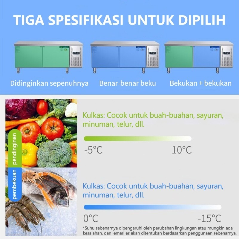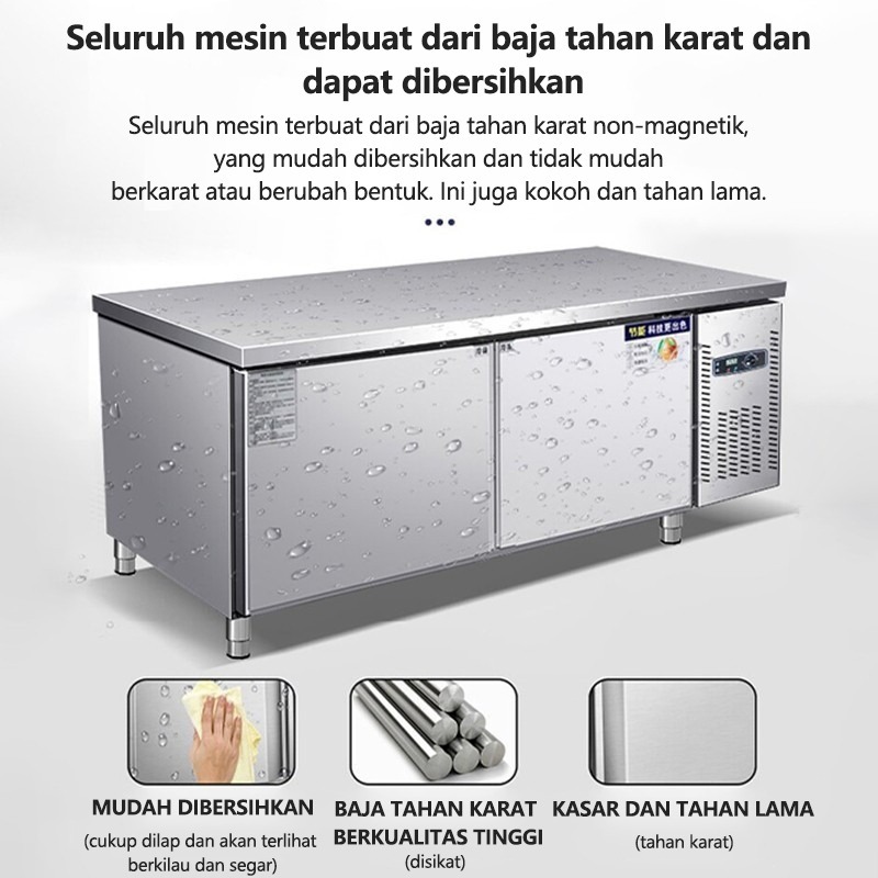 Bar Counter Chiller Meja Kerja Pendinginan Freezer Komersial Penjaga Kesegaran Kulkas Horizontal Freezer Pendingin Toko Teh Susu Meja Operasi Pendingin Datar Penjaga Kesegaran