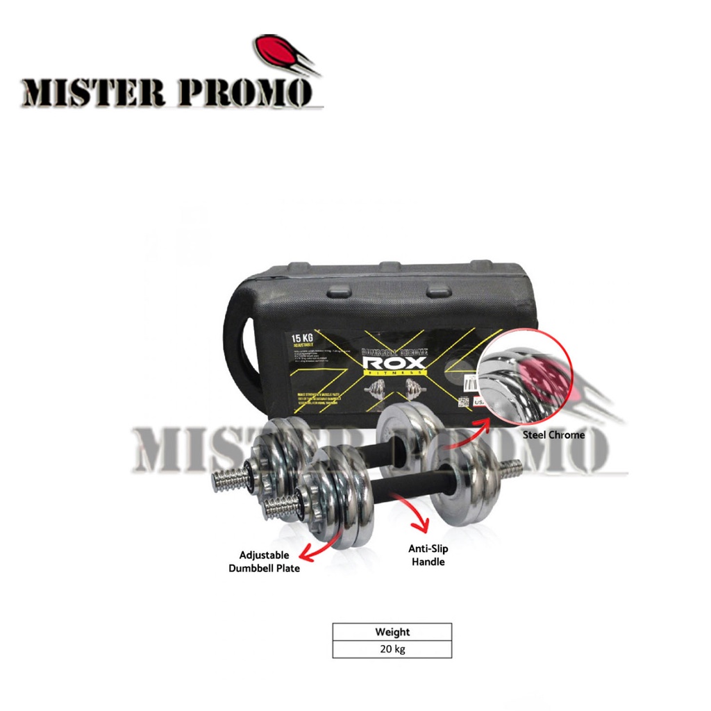 Barbel Set Dumbell Chrome Besi 20 Kg 20Kg Barbell ROX Original + Box