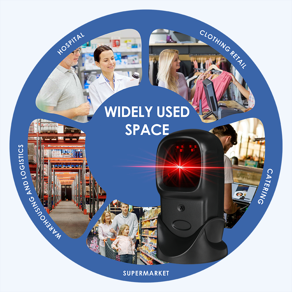 2D Omnidirectional Barcode Scanner USB Desktop Laser Imager, Wired Barcode Reader untuk Kasir&Toko
