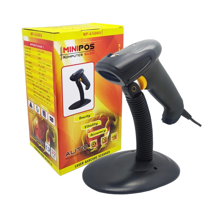 Barcode Scanner 1D MINIPOS MP-6500A USB Auto Scan Auto Trigger Laser Tajam Terang Kuat