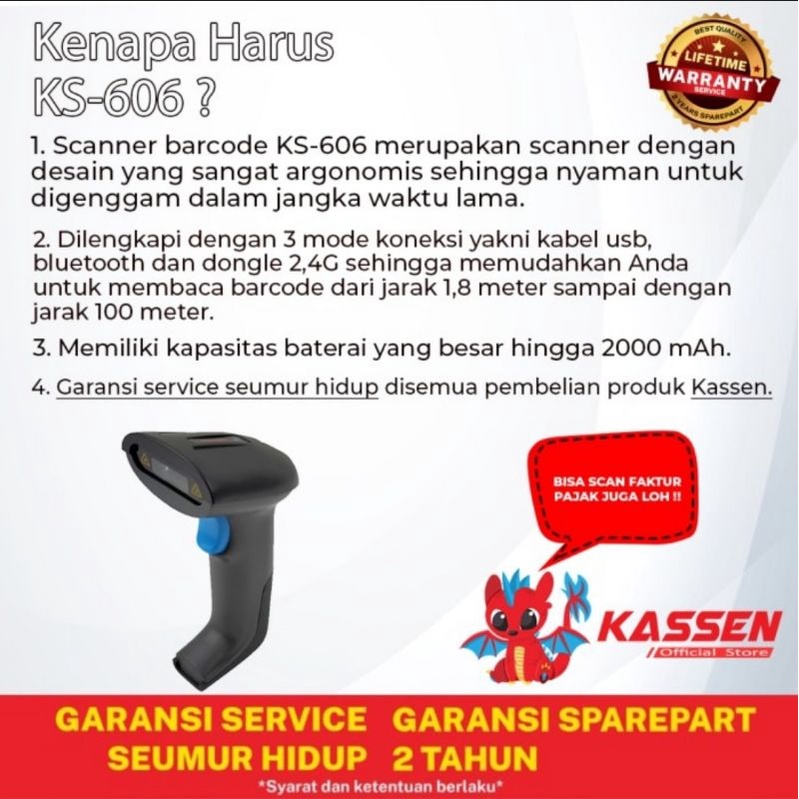Barcode Scanner KASSEN KS-606 2D Bluetooth Wired Barcode Scanner