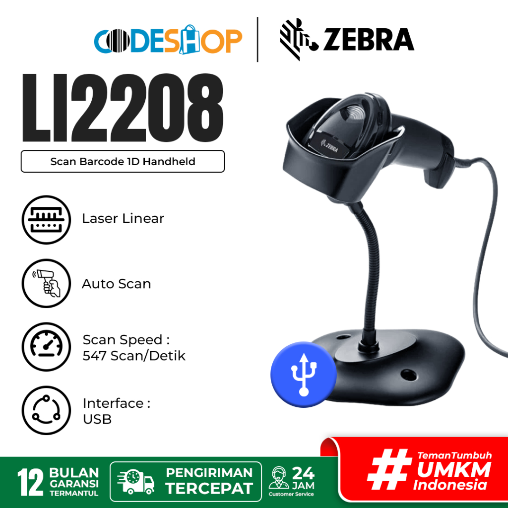 Barcode Scanner Motorola Zebra Symbol LI2208 1D Auto Sense & Scan