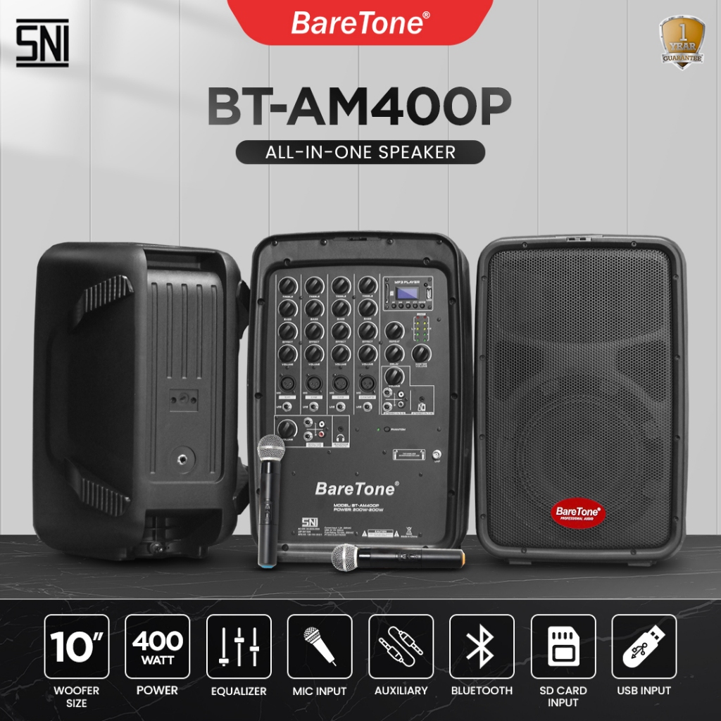 BareTone Power Mixer AM400P + 1 pasang 2 Way Pasif Loudspeaker + Microphone - Garansi Resmi 1 Tahun