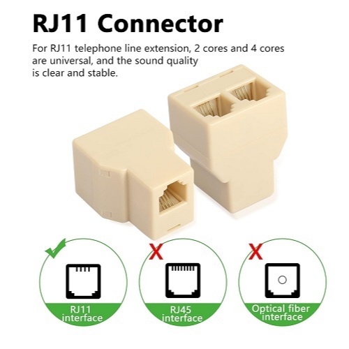 Barel Splitter Telepon RJ11 1 to 2 Telephone Phone Fax Jack Line Splitter Cabang 2 Adapter Connector RJ-11