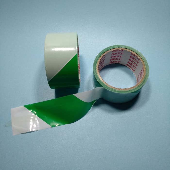 Barricade Tape Safety Line Hijau Putih 2" x 40meter BEST
