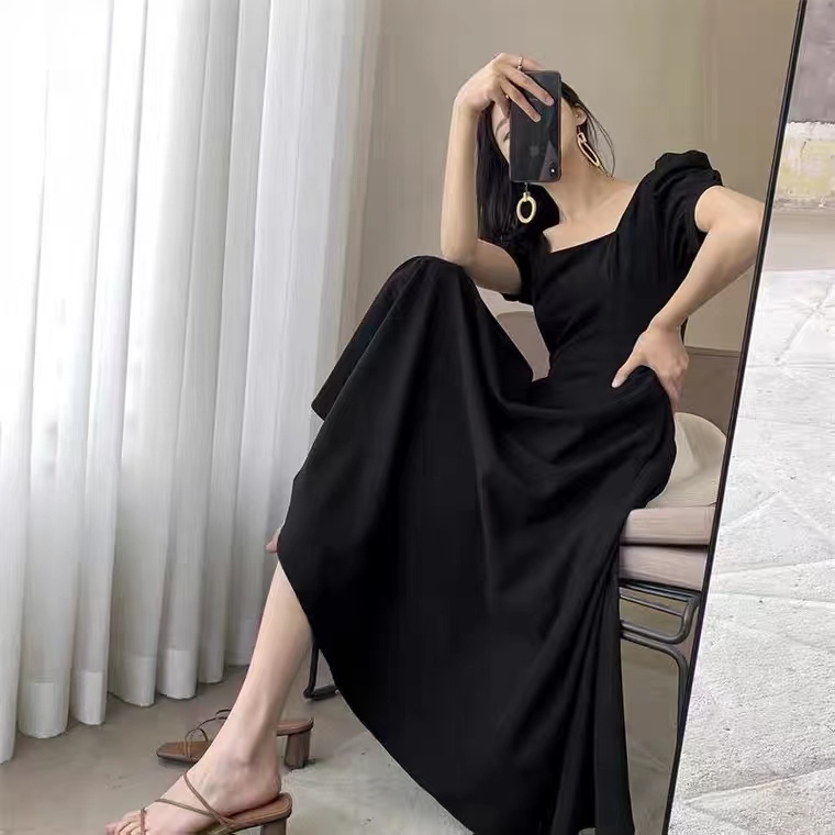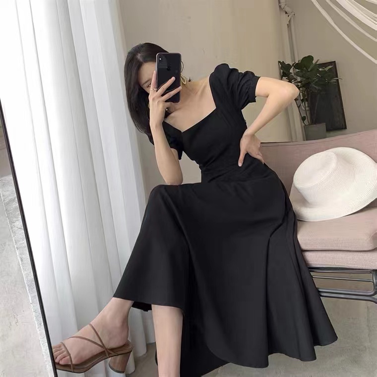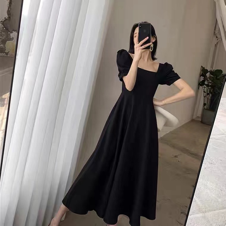Baru Hitam Gaun Hepburn Hitam Kecil Leher Persegi Lutut Gaya Gaun/dress korea