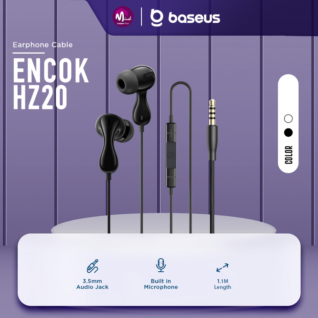 Baseus Encok HZ20 Headset Handsfree Encok Jack 3.5mm Wired Earphone Mic