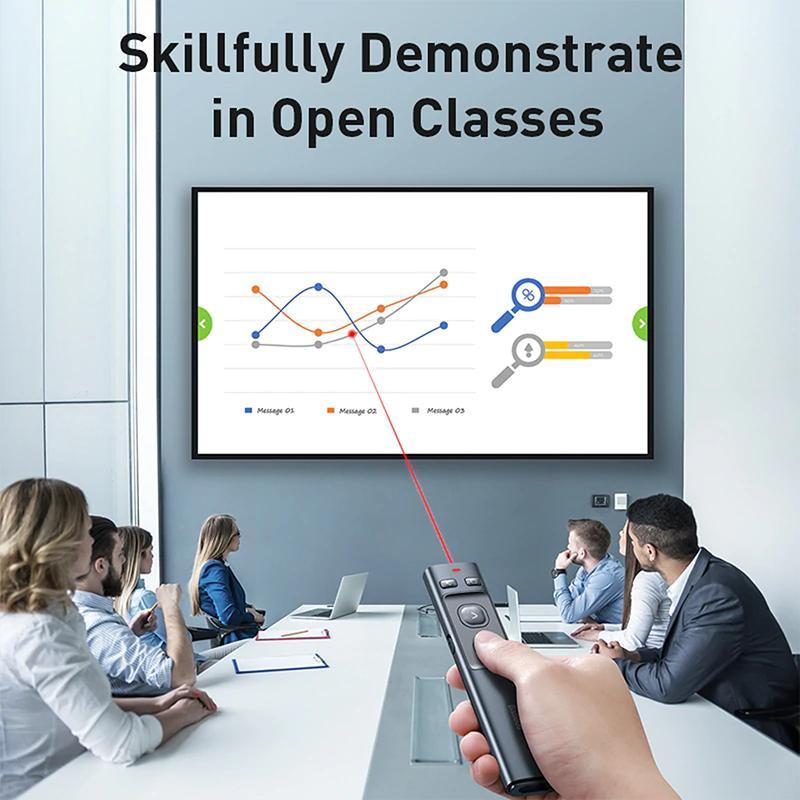 Baseus Laser Pointer Wireless Presenter Pointer Remote Control Laser Pointer Pen Jarak 100 meter USB Type C Universal