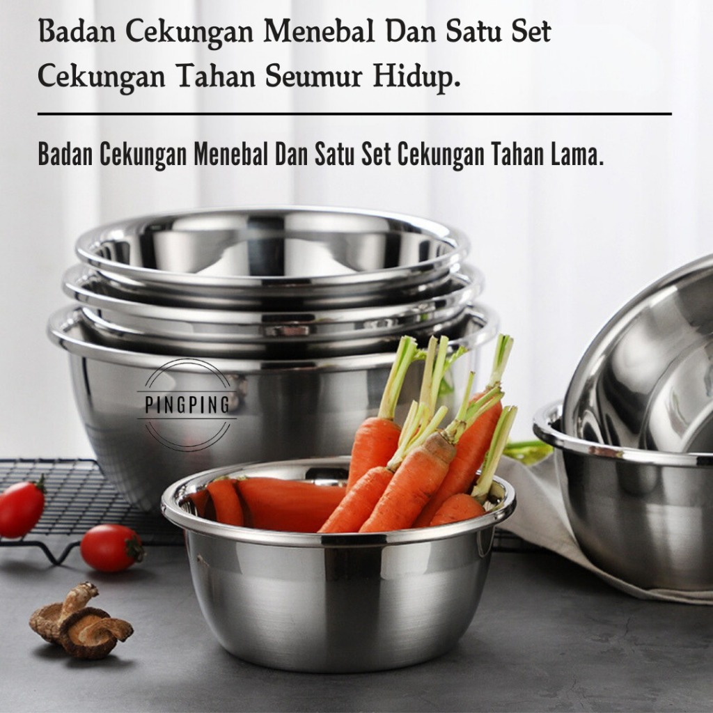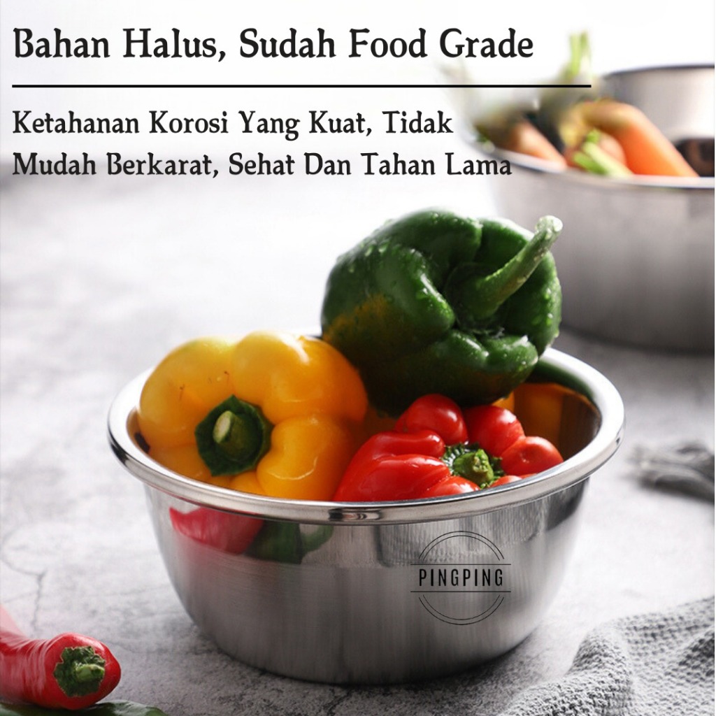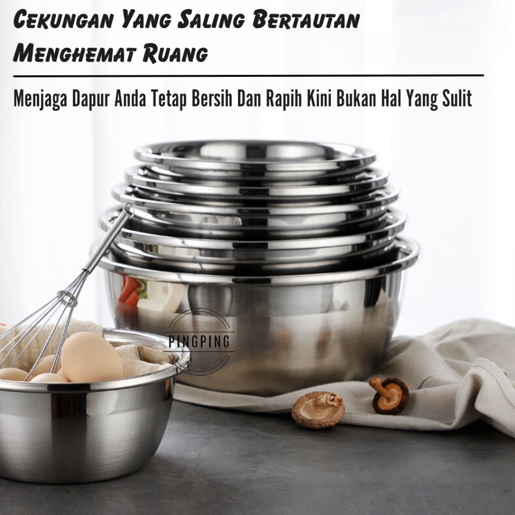 Baskom Set Stainless Tebal SET 6PCS SUS 304 20CM, 22CM, 24CM, 26CM, 28CM, 30CM Wadah Cuci Beras Buah Sayur / Set Baskom Mangkuk Premium Isi 6 Pcs Tebal & Tinggi Stainless