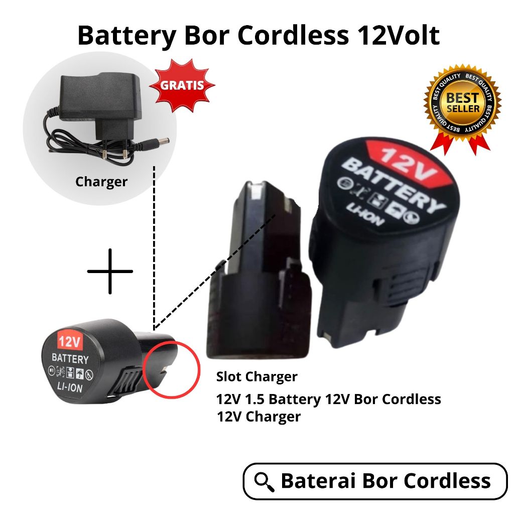 Baterai 12V Mesin Bor Batre Cordless 12 Volt Original Charger Battery Electric Untuk Semua Merk Bor Dan Mesin Rumput Batrai