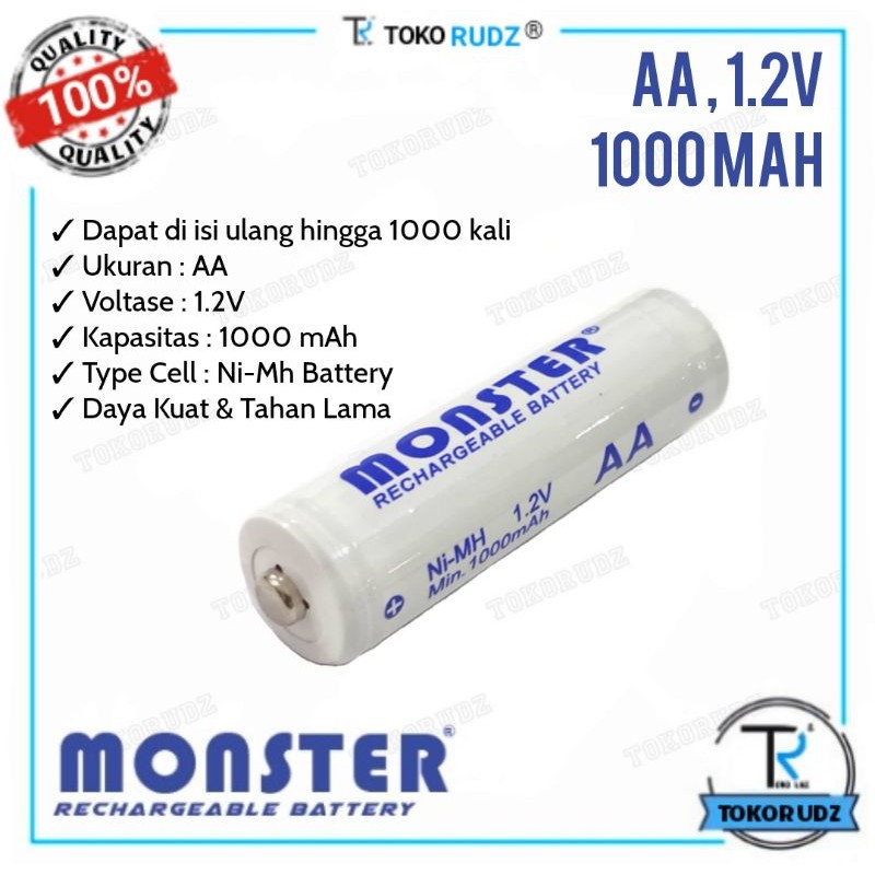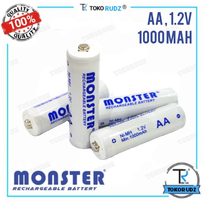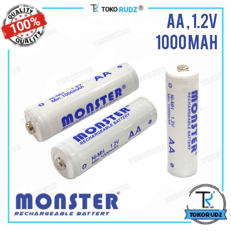 Baterai AA Batre A2 isi ulang Cas 1000mAh Rechargeable 1.2V MONSTER