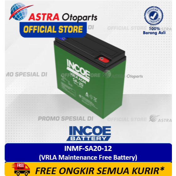 Baterai / Aki Deep Cycle INMF-SA20-12 (20 Ah - 12 Volt) Merk INCOE - untuk Sepeda Listrik, Motor Listrik, Mobil-mobilan anak, Mainan Anak, dan lainnya (VRLA Maintenance Free Battery)
