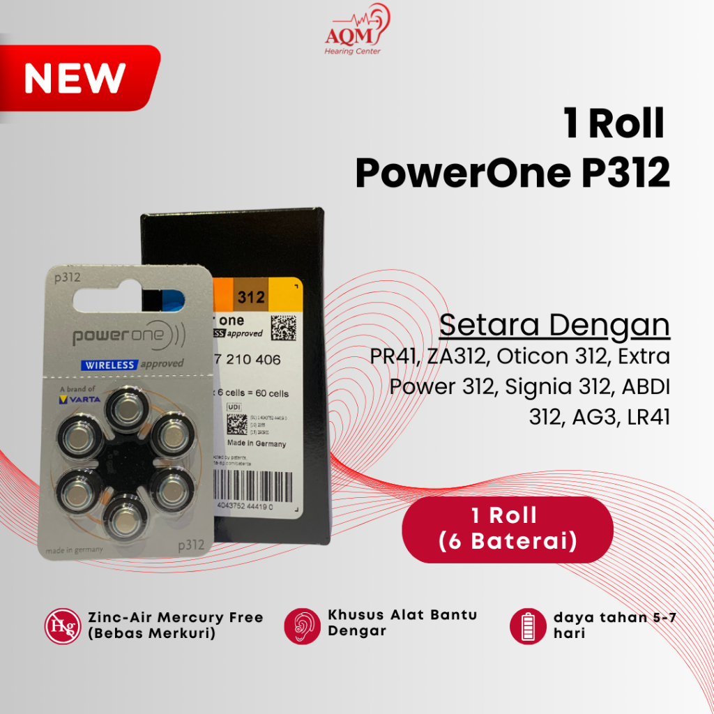 1Roll (6Butir) P312 (Brown) | Baterai hearing aid | Baterai Khusus Alat Dengar | Powerone P312 | PR41 | AG3 | ZA312 | LR41 FlashSale