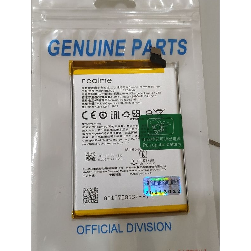 Baterai Batre Battery Realme C2 BLP721 100% Original Quality Batere Batrai