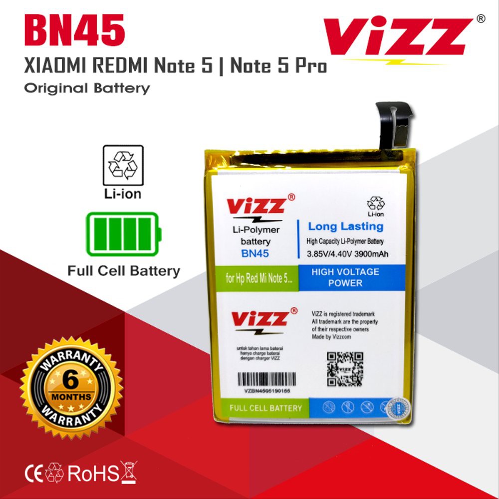 Baterai Batre Vizz BN45 Xiaomi Redmi Note 5 / Redmi Note 5 Pro / Redmi Note 6 Pro Original Vizz
