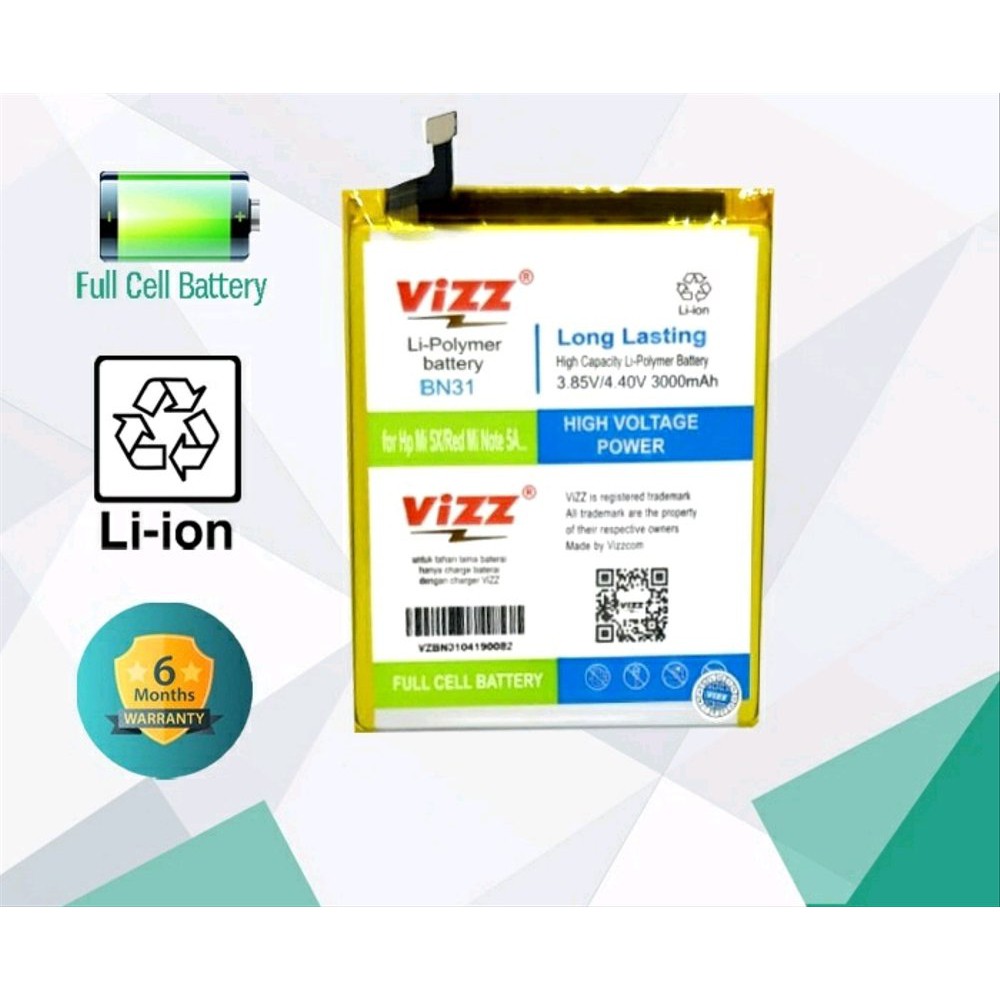 Baterai Batre Vizz Xiaomi Redmi Note 5A / Redmi Note 5A Prime / Mi5X / MiA1 / Redmi S2 BN31 Original Vizz