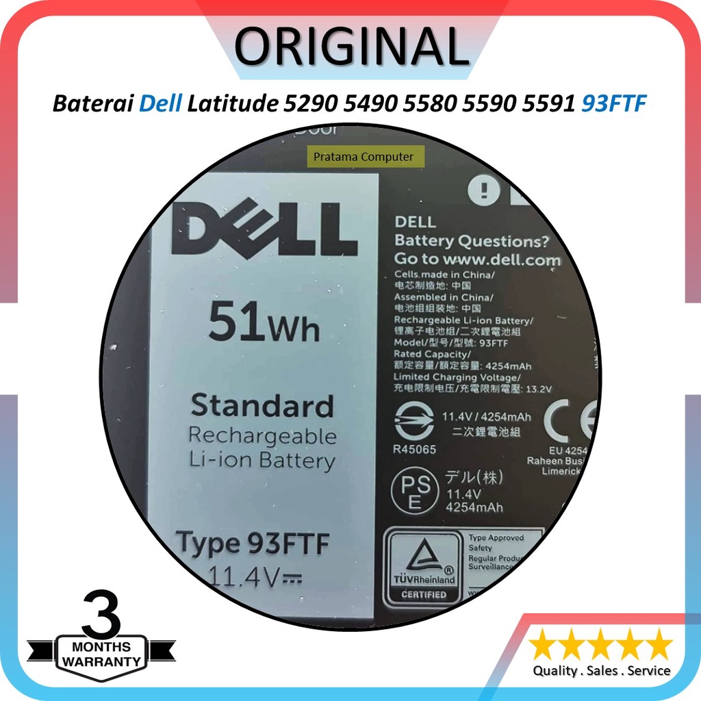 Baterai Battery Dell Precision 15 3520 3530 Type 93FTF 51Wh