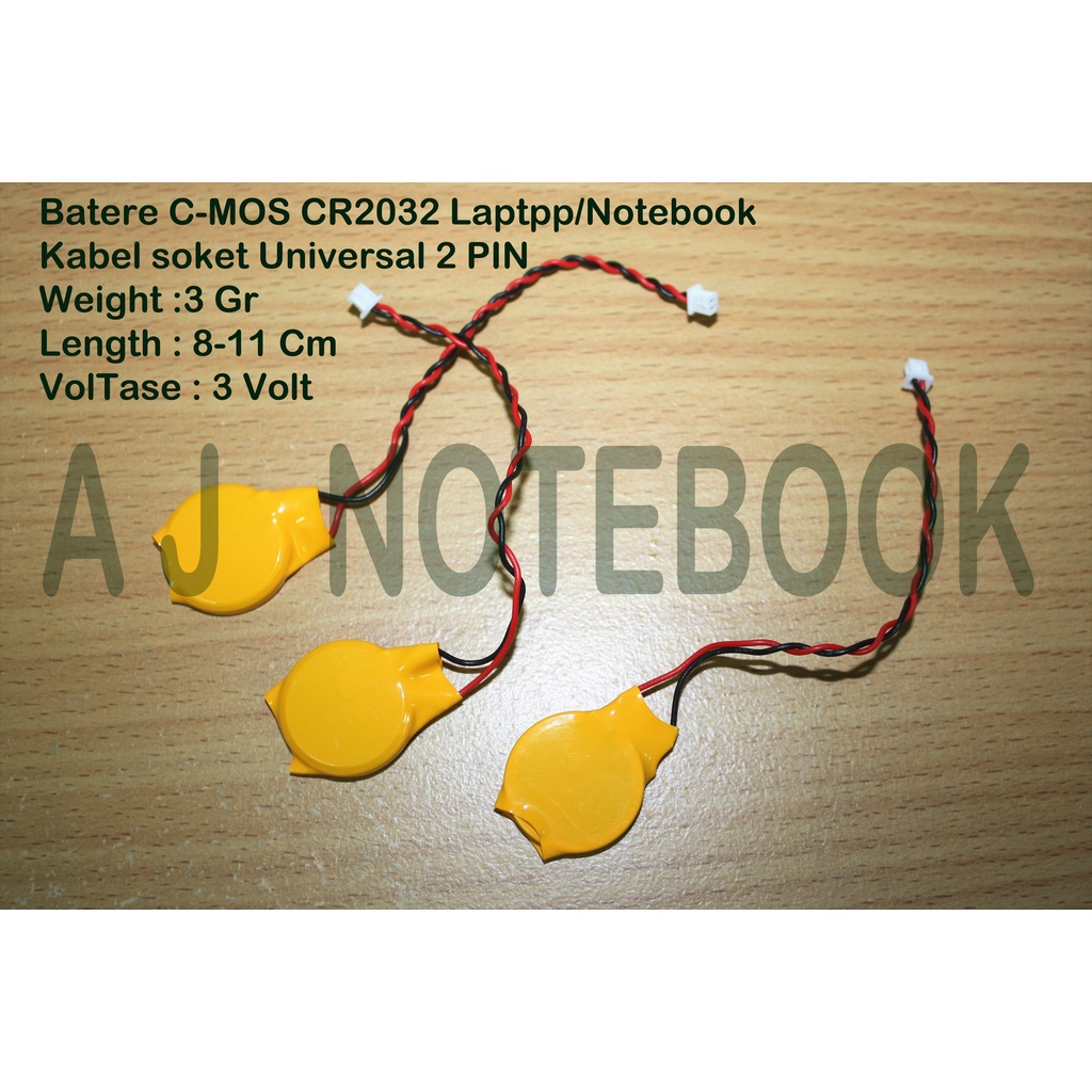 Baterai CMOS BIOS Laptop Netbook Mainboard CR2032 Soket Kabel 2 Pin 3 VOLT Universal -AJNB